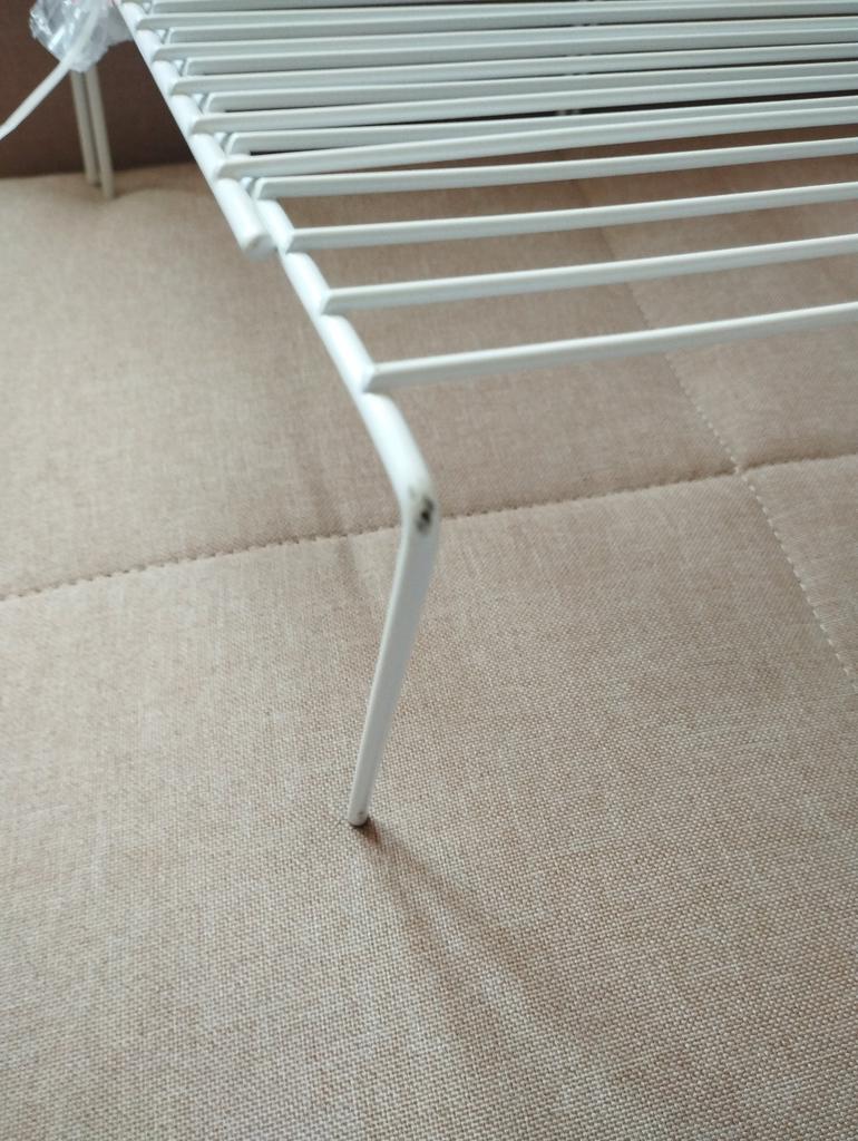 нормальная полка, как на картинке, только в дороге погнулась, выпрямляется руками, но красочка слегка пооблупилась.... аналогичную полку заказывала из России - там были пластмассовые колпачки на ножках, а здесь нет (мелочь, а отличается)