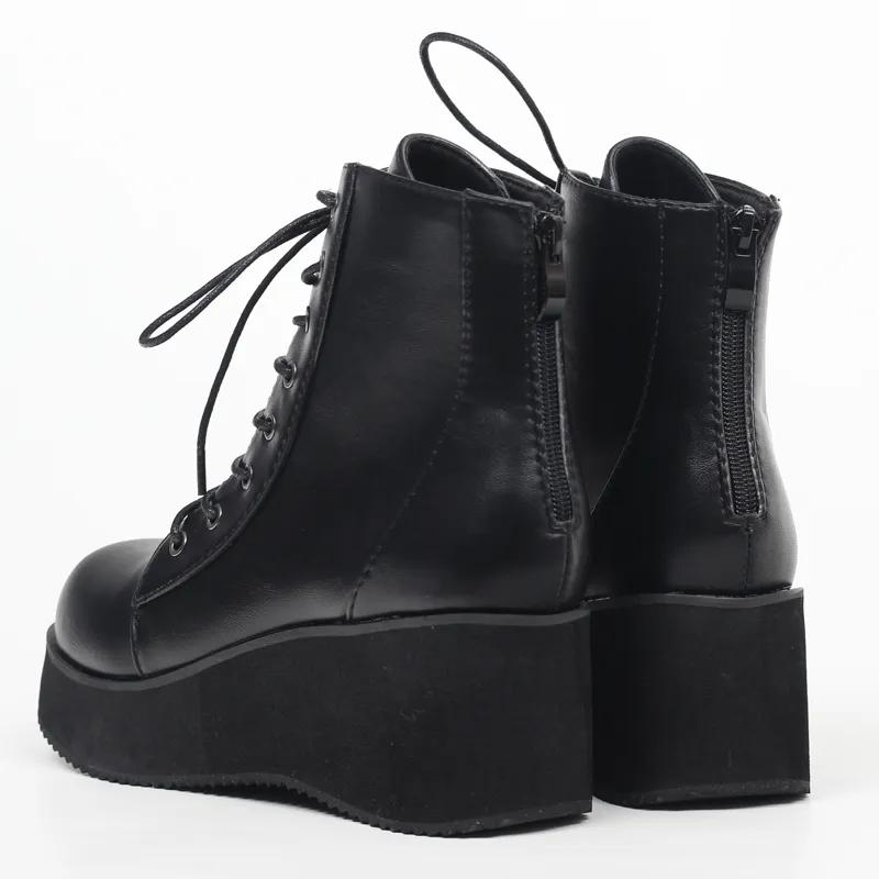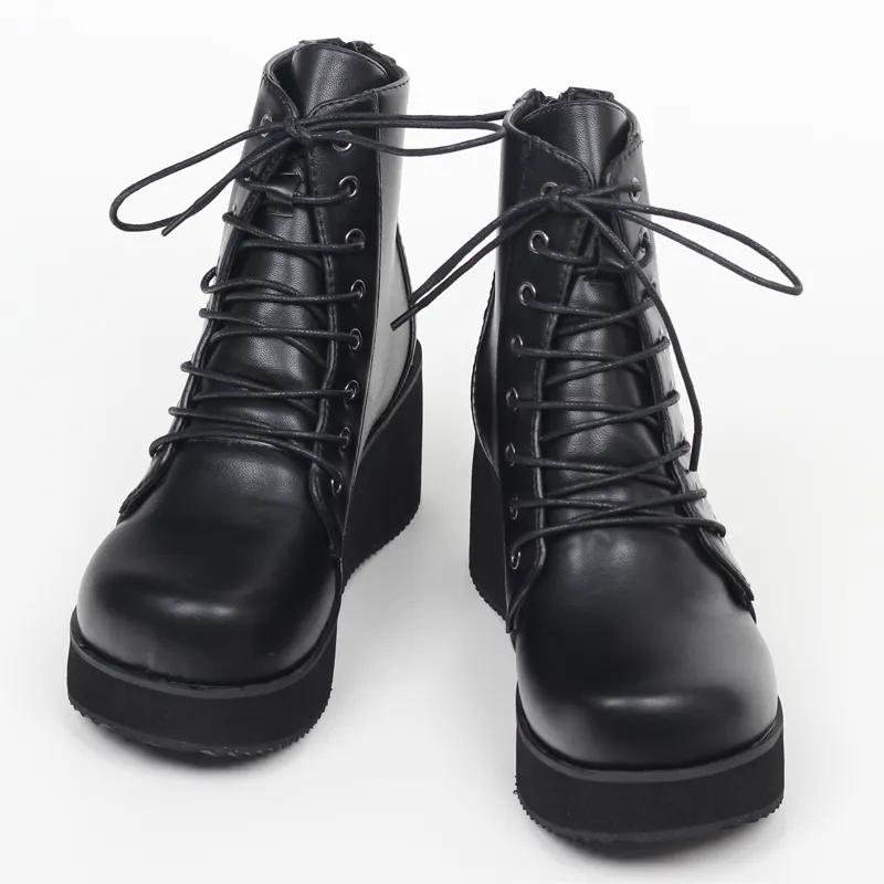 Унисекс, панк-танкетка, черные матовые кожаные костюмы на Хэллоуин, 7 см, COS, готические ботильоны