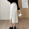 Вязаная полуюбка на бедрах с разрезом, полуюбка с запахом на бедрах для женщин, зимний дизайн, элегантная одношаговая юбка, эластичная талия, эластичная юбка средней длины