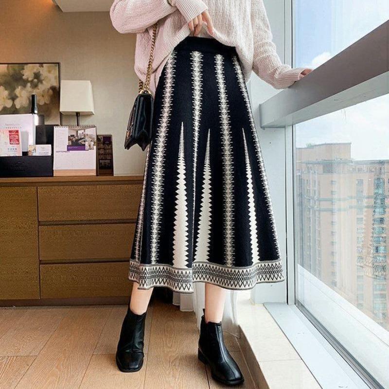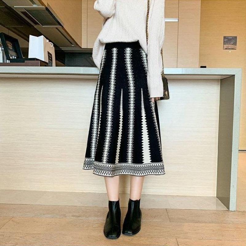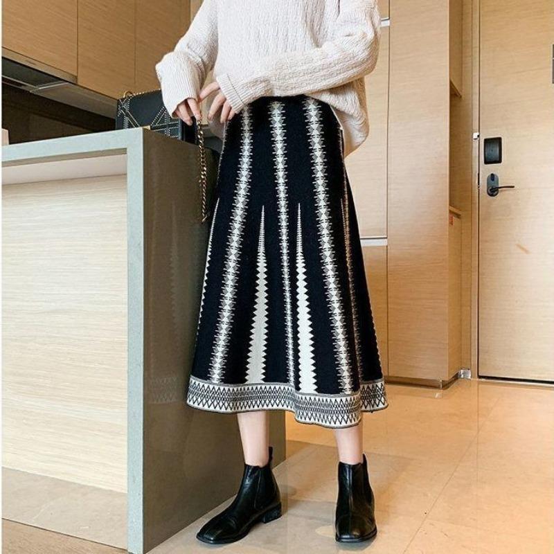Вязаная юбка средней длины для женщин, осенне-зимняя тонкая и универсальная шерстяная юбка трапециевидной формы средней длины с высокой талией, женские топы