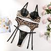 Aduloty Женское сексуальное нижнее белье, тонкая сетка, перспективный леопардовый узор, кружевное эротическое нижнее белье, бюстгальтер на косточках, комплект из трех