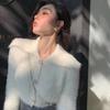 Норковый флисовый кардиган, свитер, женский короткий свитер-поло, мягкий восковой осенний однотонный вязаный кардиган с ромбовидными пуговицами, маленький ароматный свитер, пальто