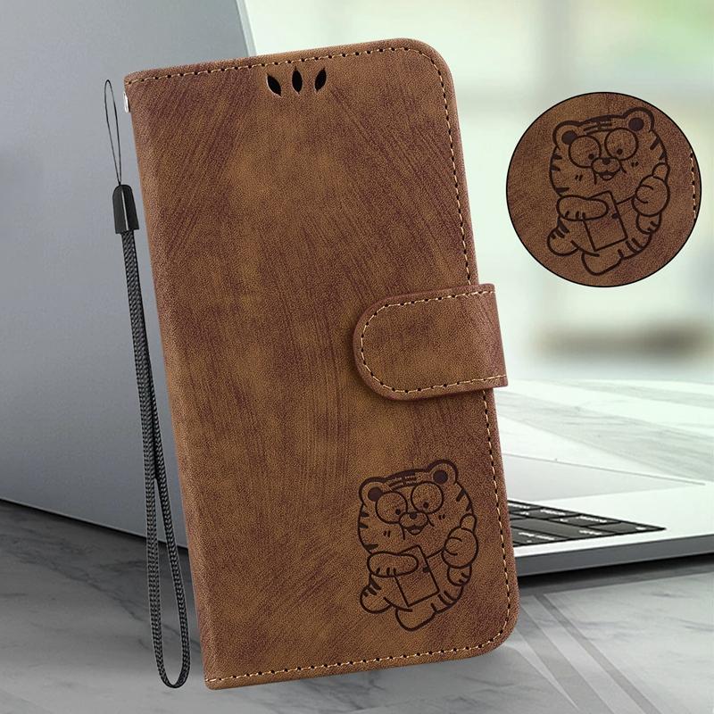 Чехол-кошелек с тиснением на коже и мультяшным тигром для iPhone Samsung Xiaomi Huawei Google откидная крышка с ремешком на руку, защитный чехол для всего тела