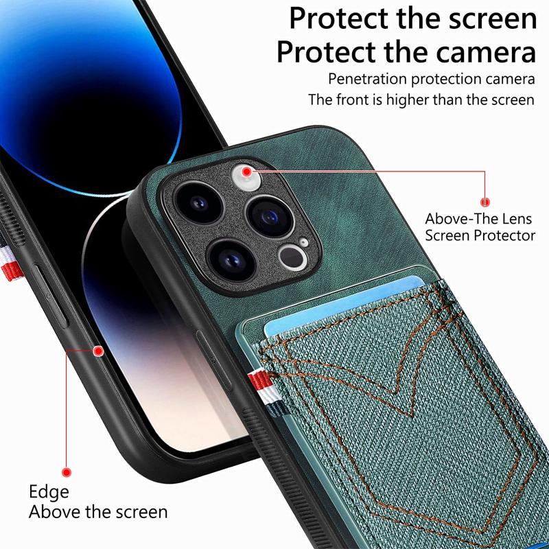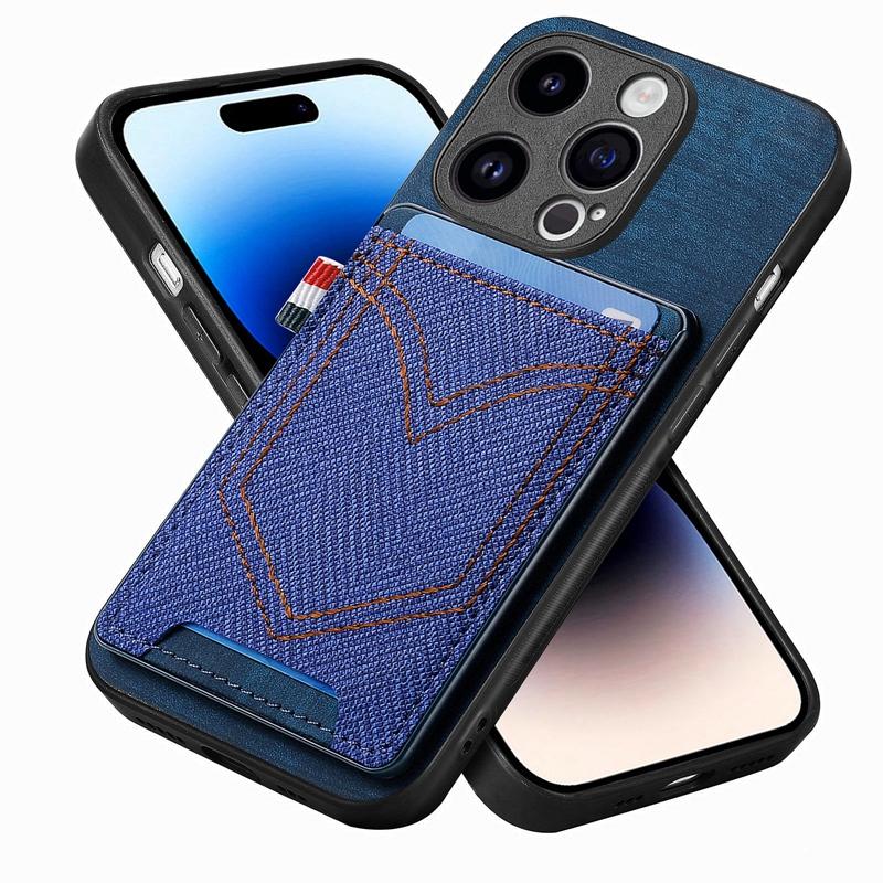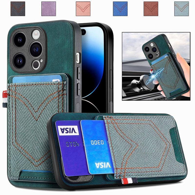 Винтажный разноцветный джинсовый узор с отделениями для карт, чехол-кошелек для телефона для iPhone Samsung, Xiaomi, Huawei, Google OPPO, защитная задняя крышка с полным объективом