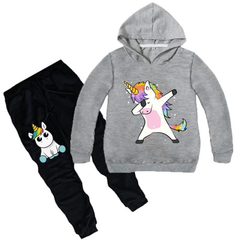 Толстовка с единорогом для мальчиков и девочек, комплект одежды из 2 предметов для маленьких девочек и мальчиков, летний спортивный костюм с капюшоном, детские повседневные костюмы, комплекты детской одежды