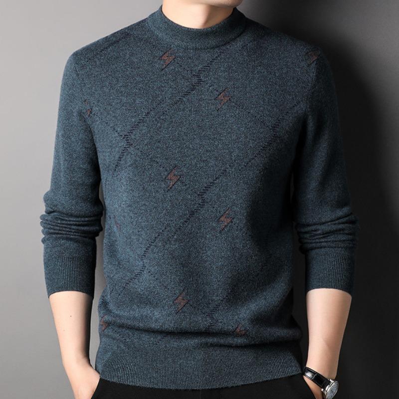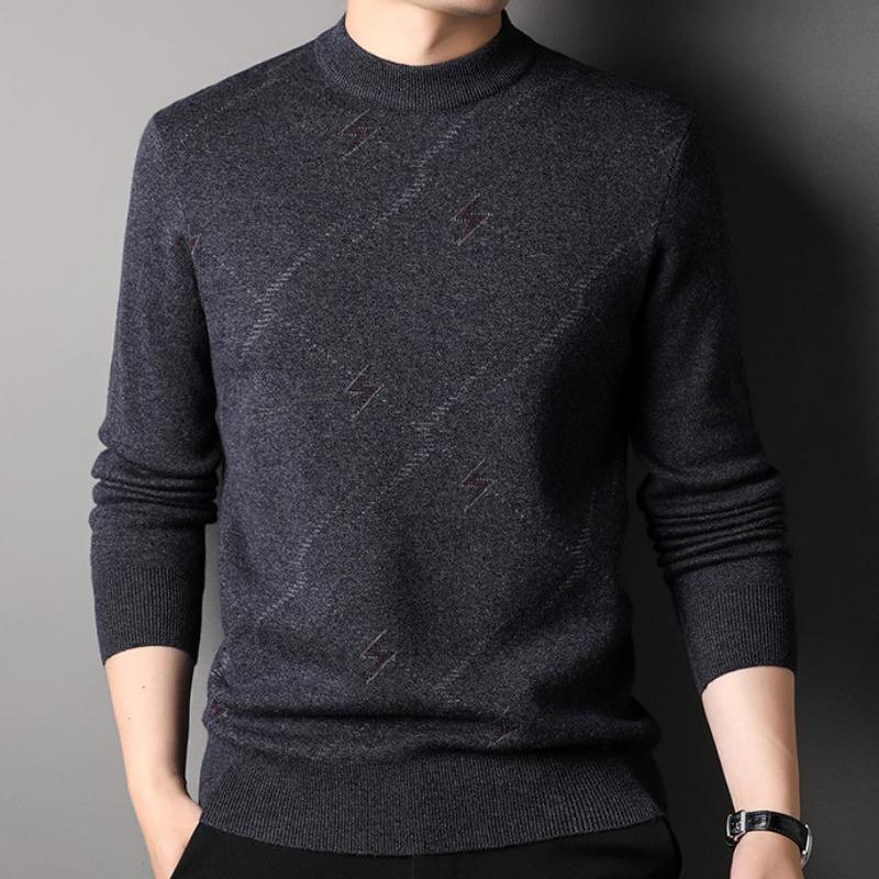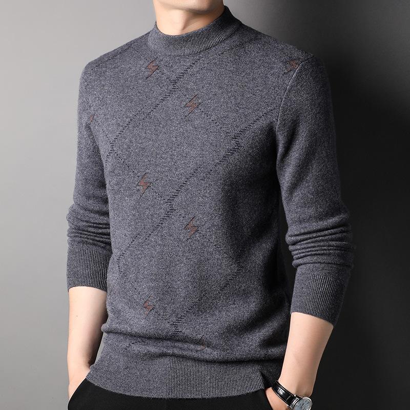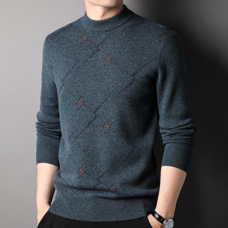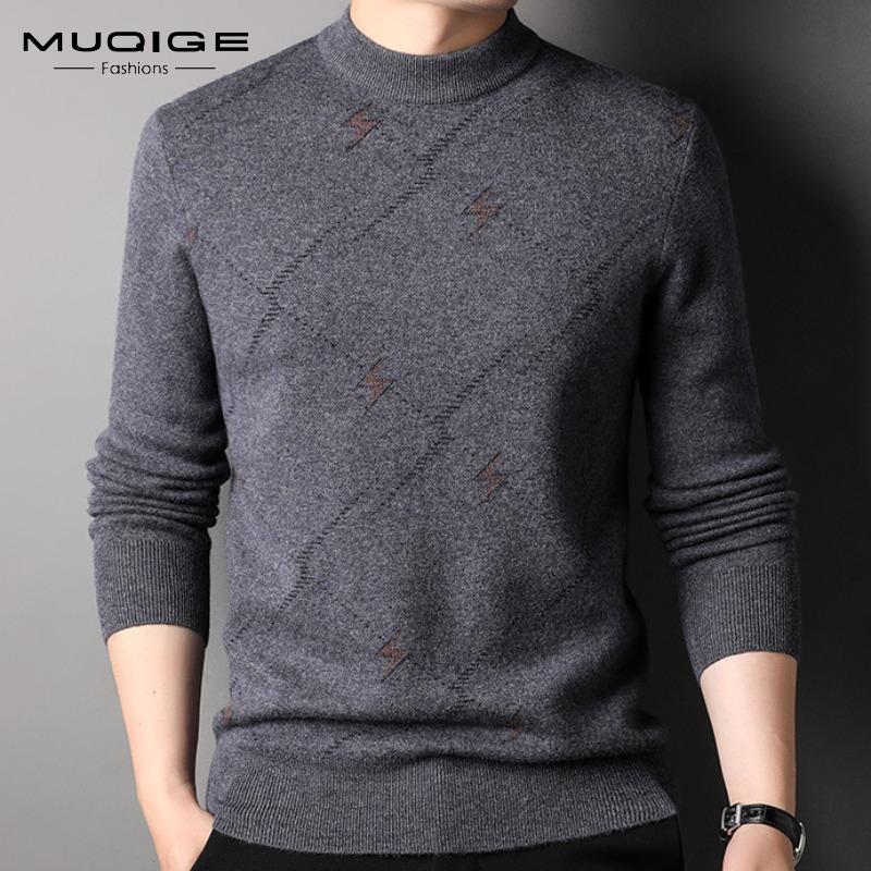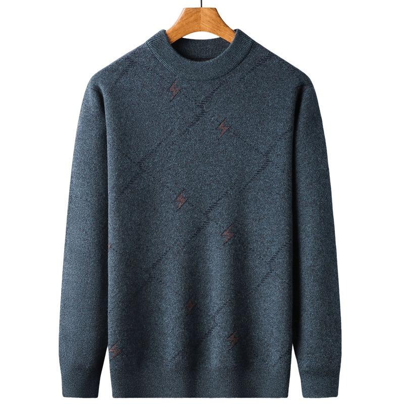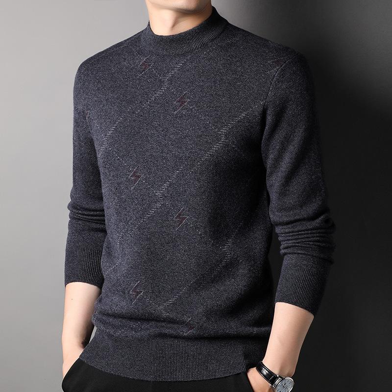 Мужской вязаный нижний свитер с круглым вырезом из чистой шерсти, шерстяной свитер, осенне-зимний новый модный толстый джемпер