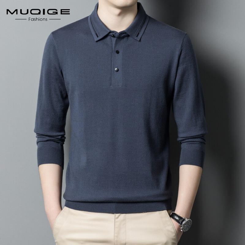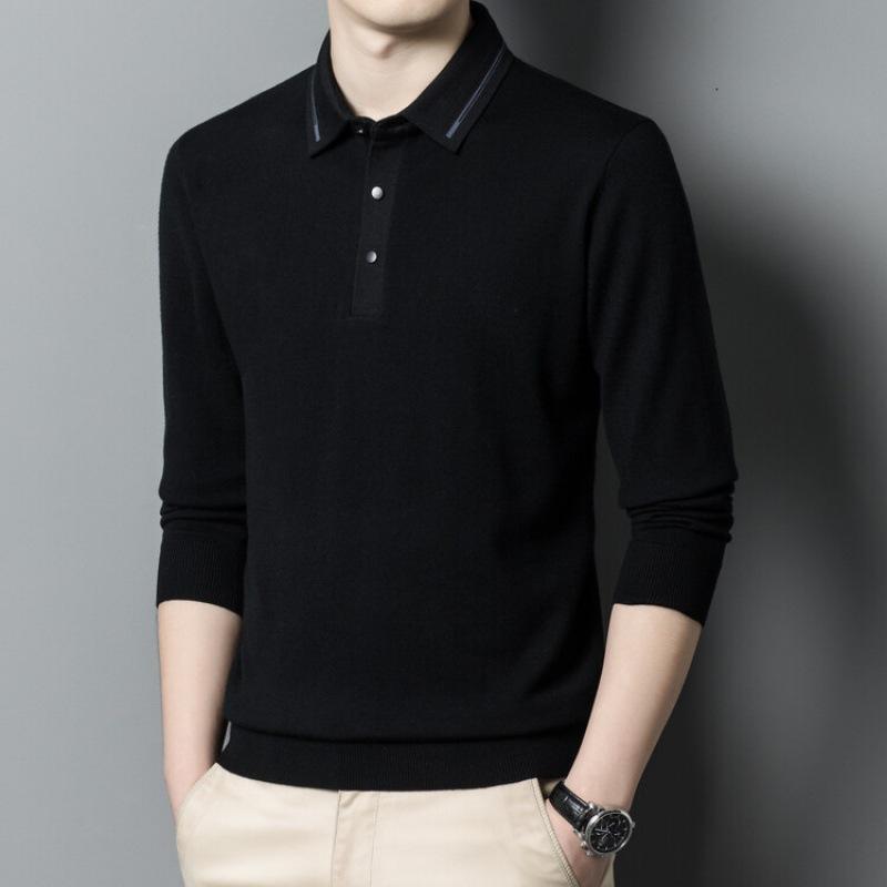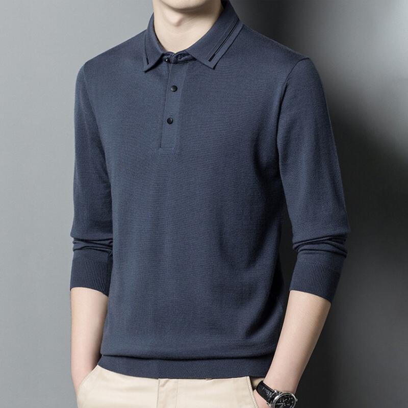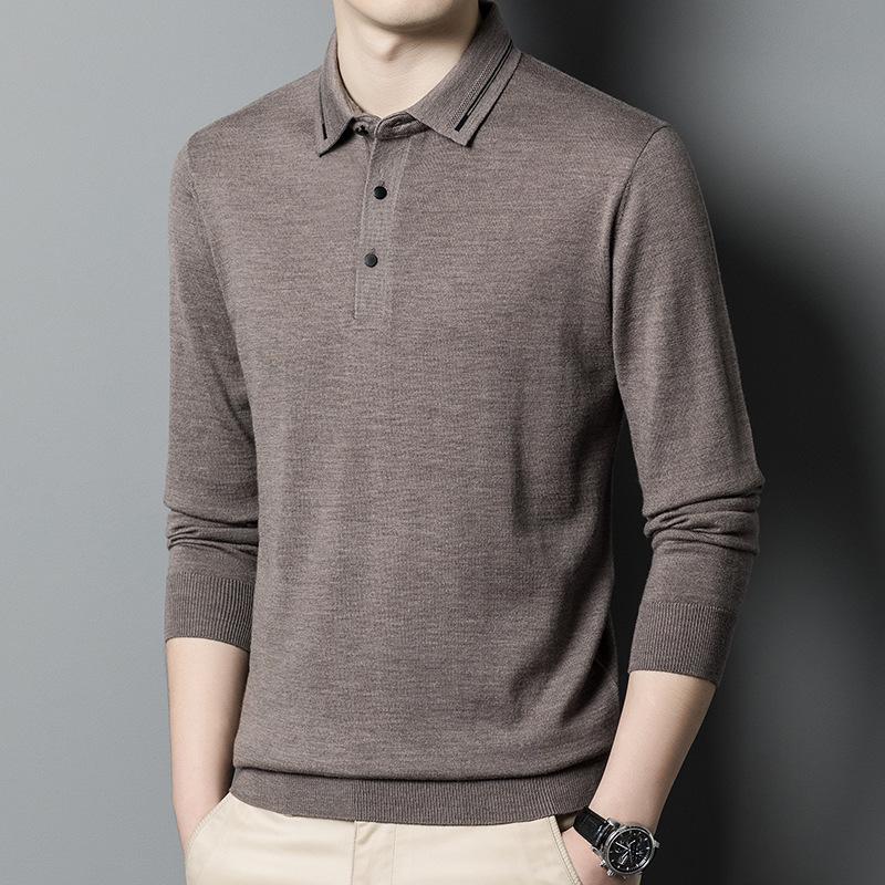Весенне-осенний мужской шерстяной свитер, высококачественная вязаная кашемировая мужская футболка с длинными рукавами, рубашка с лацканами