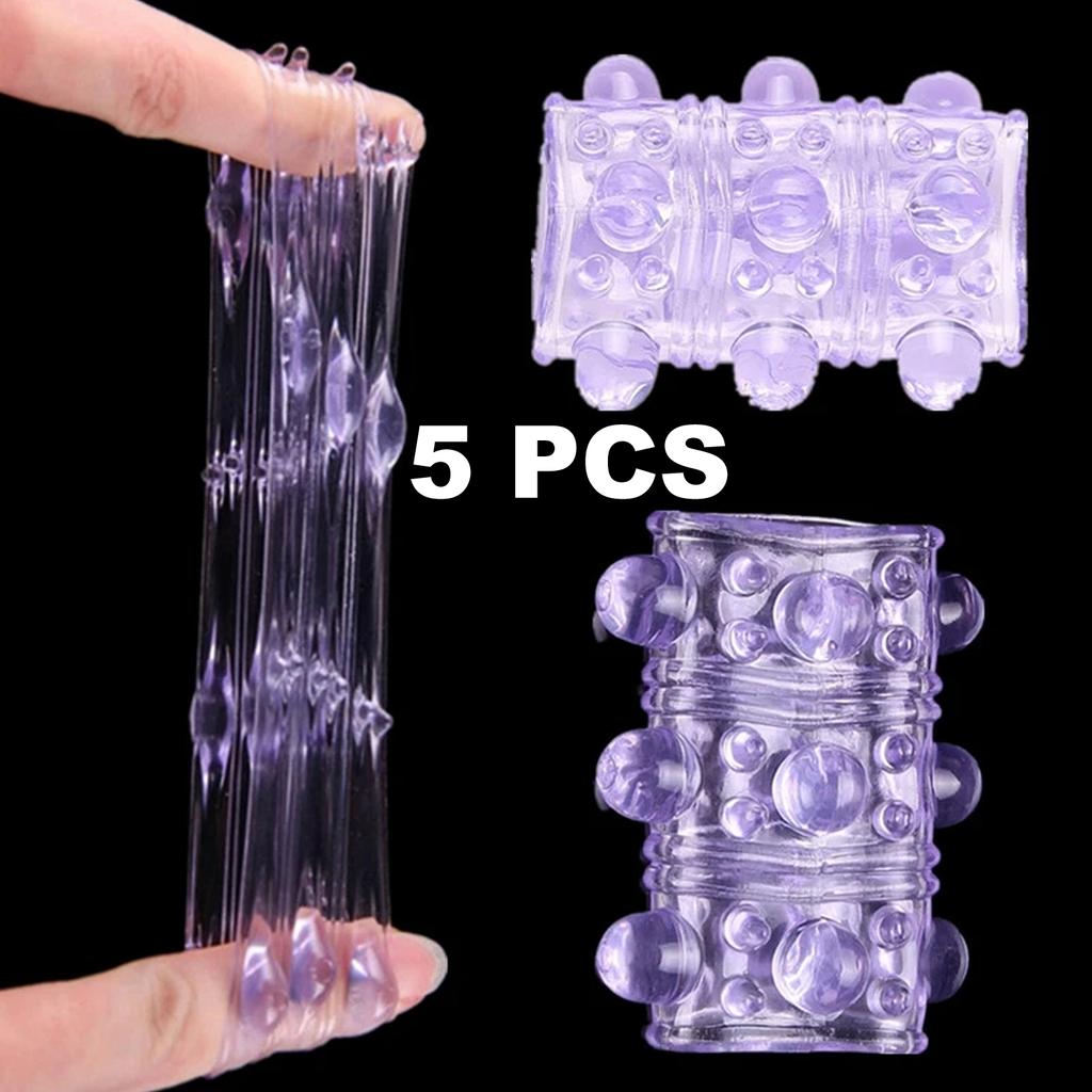 5 шт. набор, кольцо на пенис, мягкие силиконовые презервативы, ребристый удлинитель пениса, рукав для увеличения члена, эякуляция, эротические секс-игрушки для мужчин