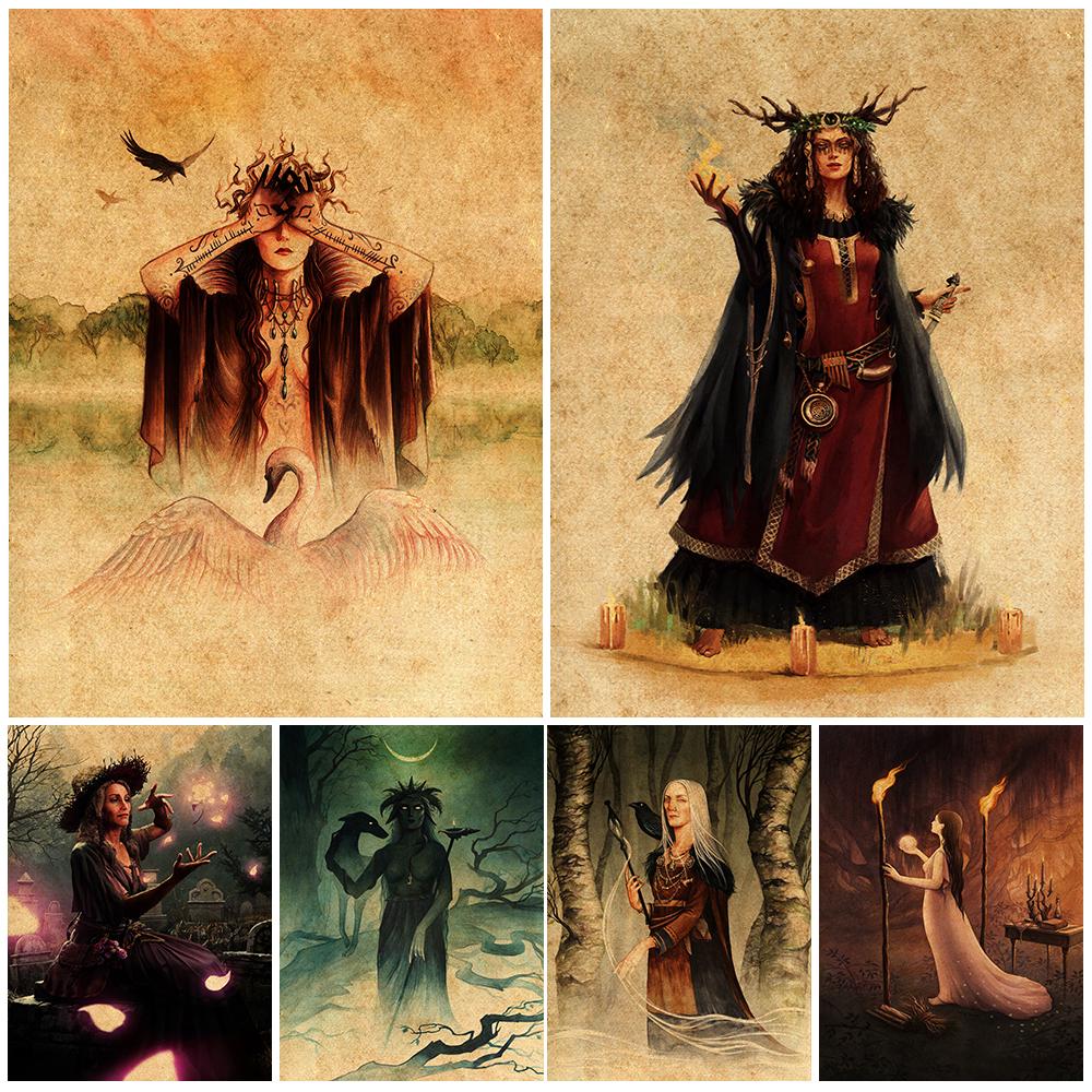 Древние волшебники, загадочная магия, художественные постеры и принты, волшебство и ведьмы, ретро настенная живопись маслом