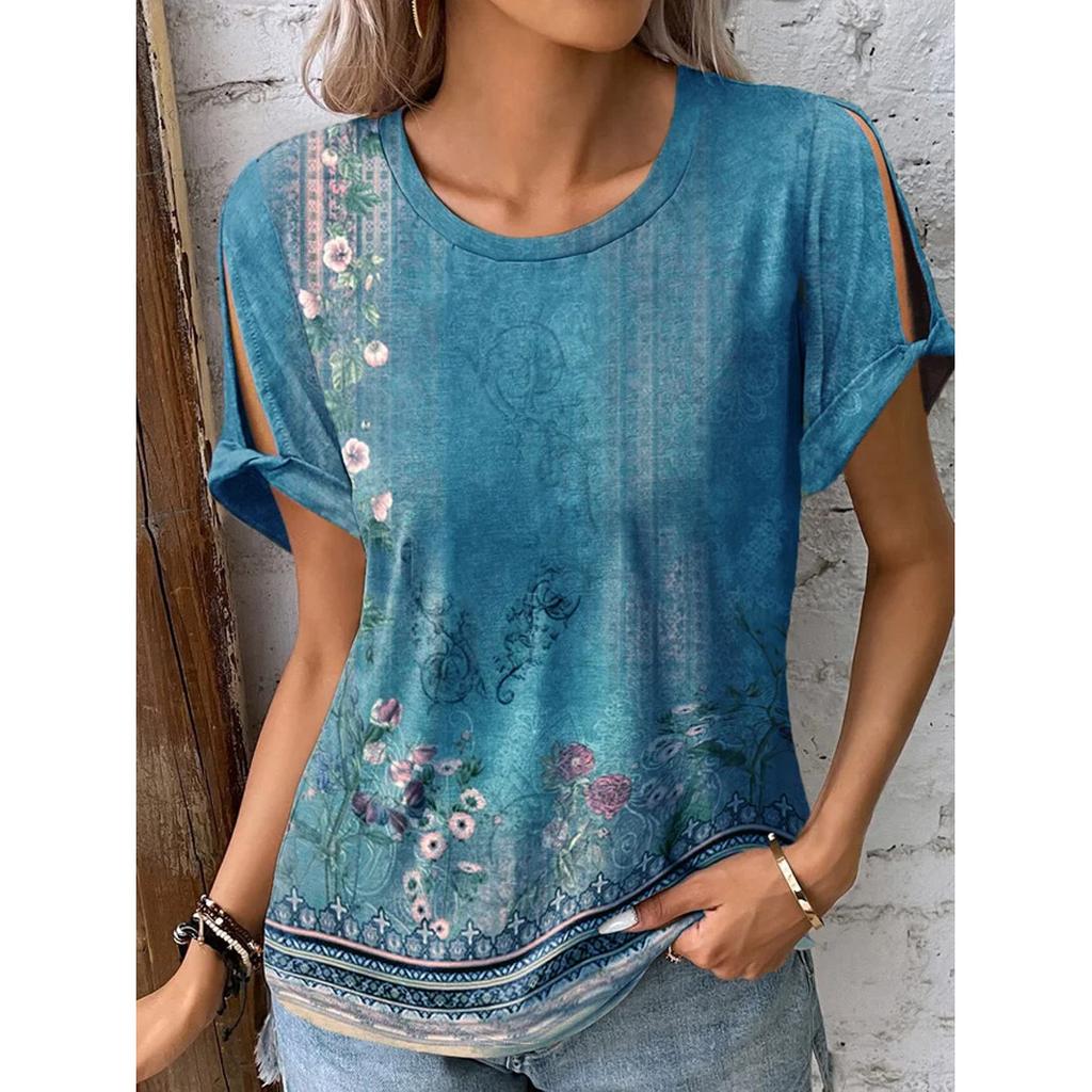 Летняя женская футболка с коротким рукавом и цветочным принтом Hallow — купить товар онлайн с бесплатной доставкой по всему миру!