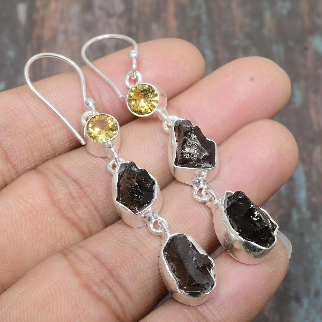 Прекрасные дымчатые грубые ювелирные серьги ручной работы из стерлингового серебра 925 пробы с драгоценным камнем цитрином