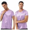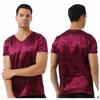 Мужская свободная пижама с коротким рукавом, атласная пижама, футболка, однотонная одежда для отдыха