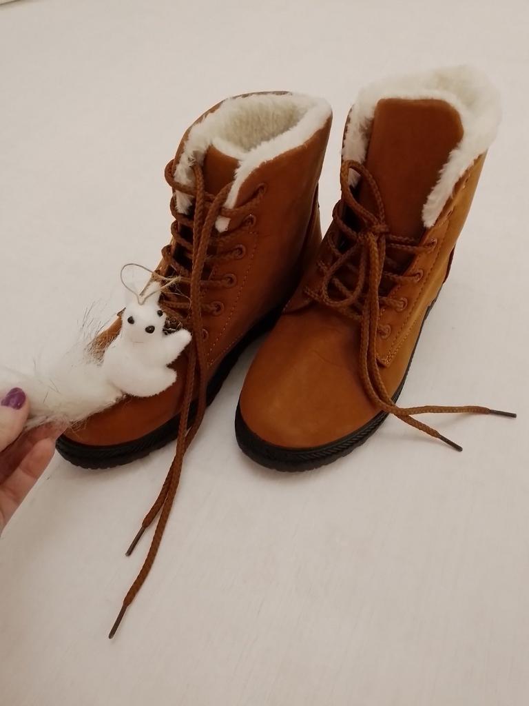 Ботинки высокие, зимние, мной уже испробованы. На ноге сидят хорошо. Брала с запасом на шерстяной носок. Мой размер 40р., ботинки 43к.Ботинки хорошо сшиты, мех внутри искусственный, на широкую ногу. Подошва не скользкая. Рекомендую девушкам и дамам старшего возраста.На большие морозы не пойдут, но до минус 10 -12 градусов годятся. ОЧЕНЬ удобные! Производителю и Джуму спасибо.