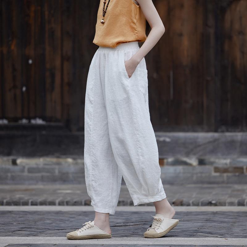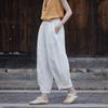 Johnature Женские винтажные шаровары с эластичной резинкой на талии, однотонные льняные брюки, осенние повседневные брюки до щиколотки
