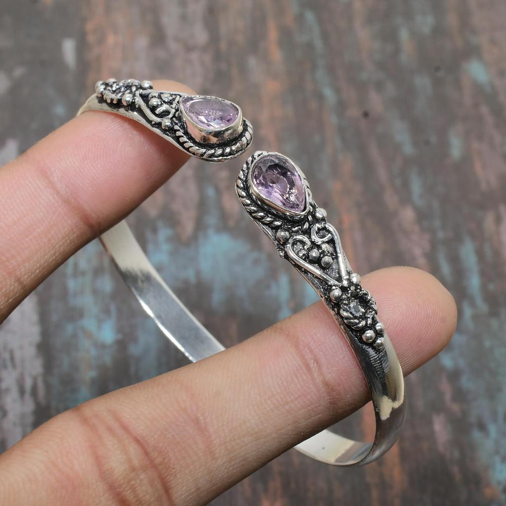 Прекрасный аметист, драгоценный камень, ювелирные изделия ручной работы, браслет из стерлингового серебра 925 пробы, регулируемый — купить товар онлайн с бесплатной доставкой по всему миру!