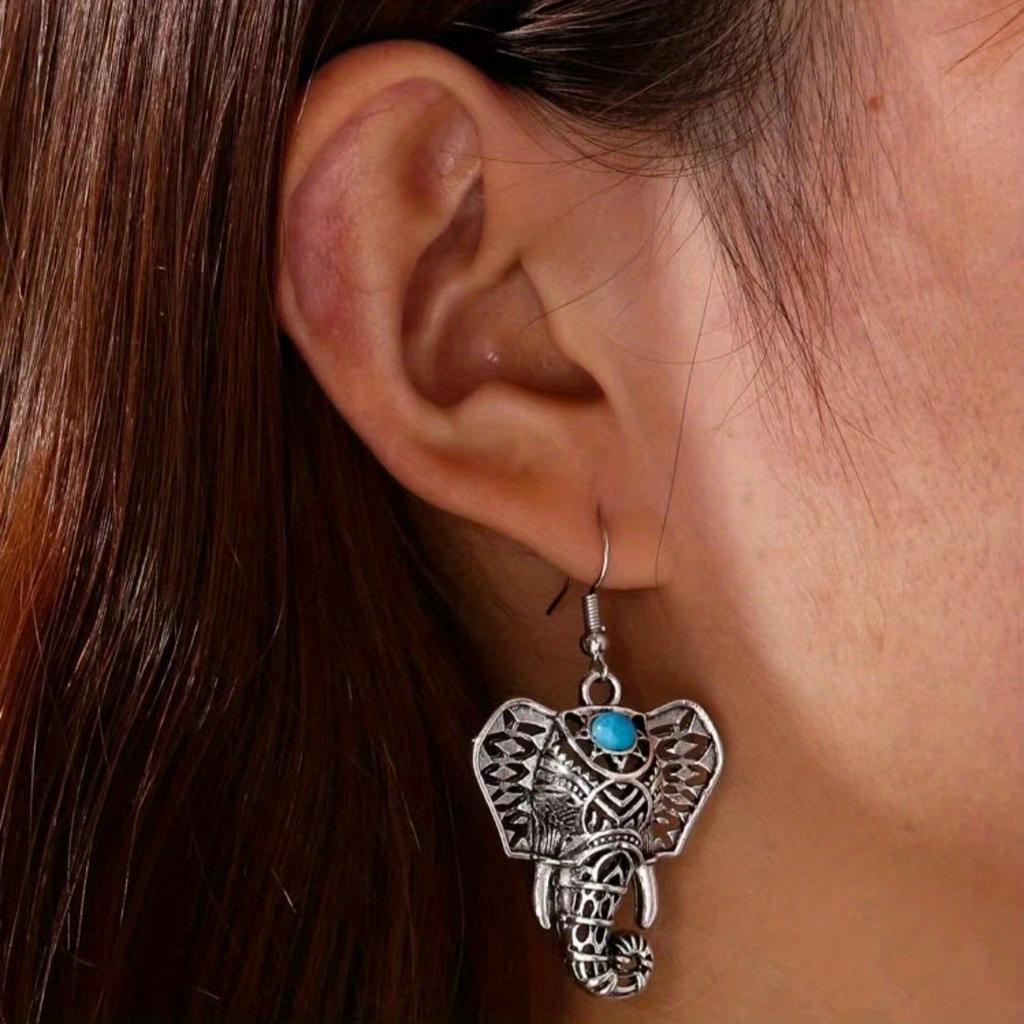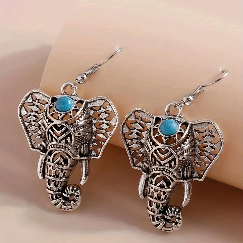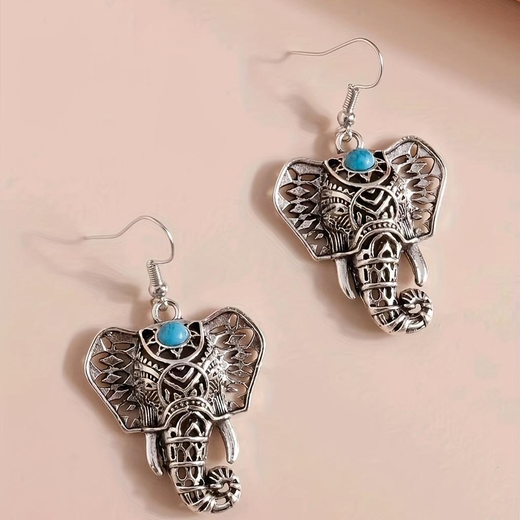 Богемные винтажные серьги-крючки со слоном, инкрустированные бирюзовым дизайном, женские аксессуары из сплава, нежный подарок для любителей друзей