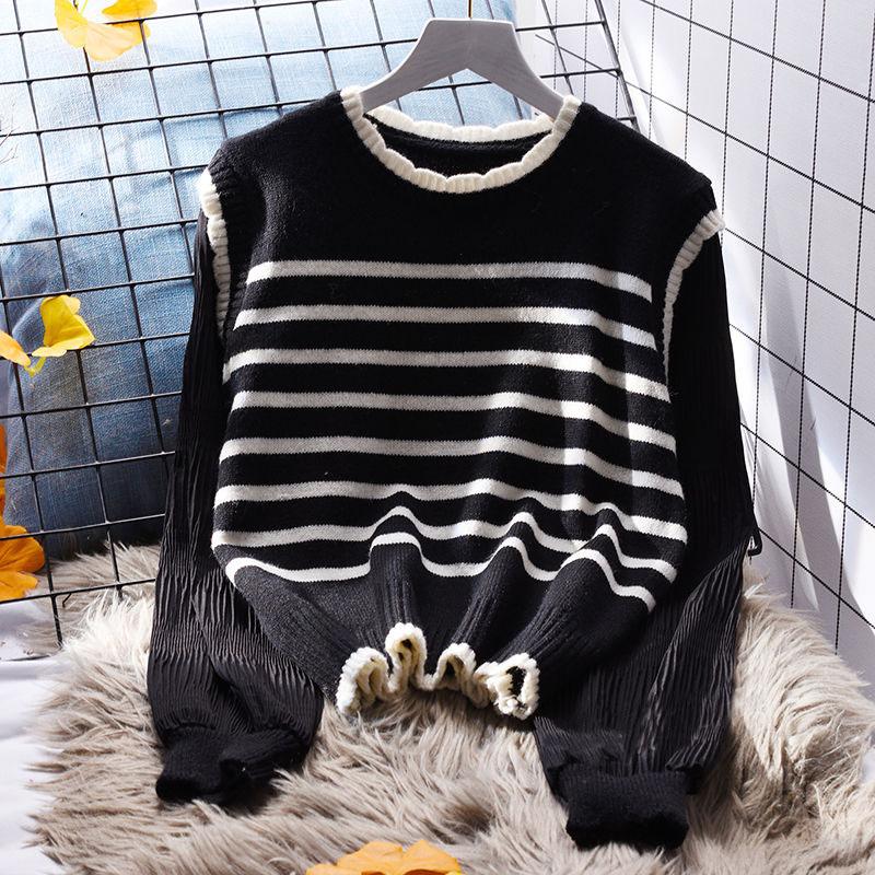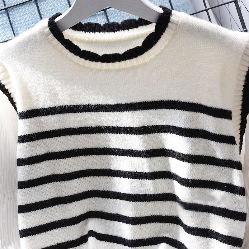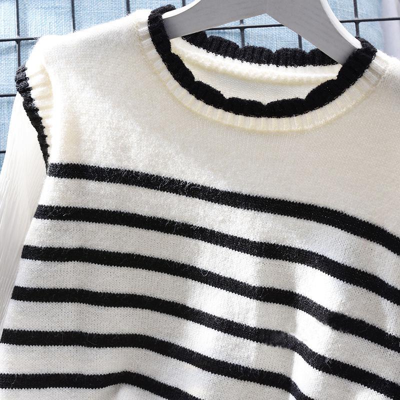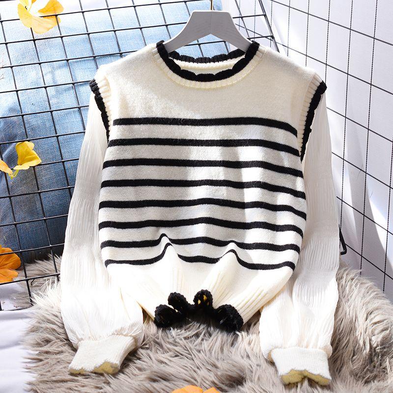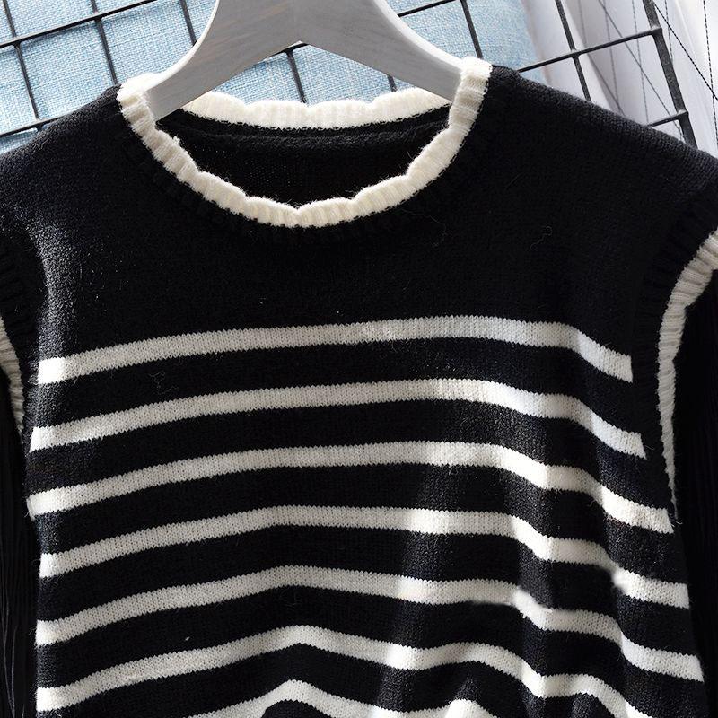 Короткий пуловер в полоску, свитер, женская свободная верхняя одежда, весенний корейский универсальный вязаный свитер с круглым вырезом, пуловер, женский топ