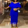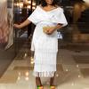 Большой размер, женское летнее модное однотонное платье с кисточками, женское элегантное цельное платье с v-образным вырезом и открытыми плечами