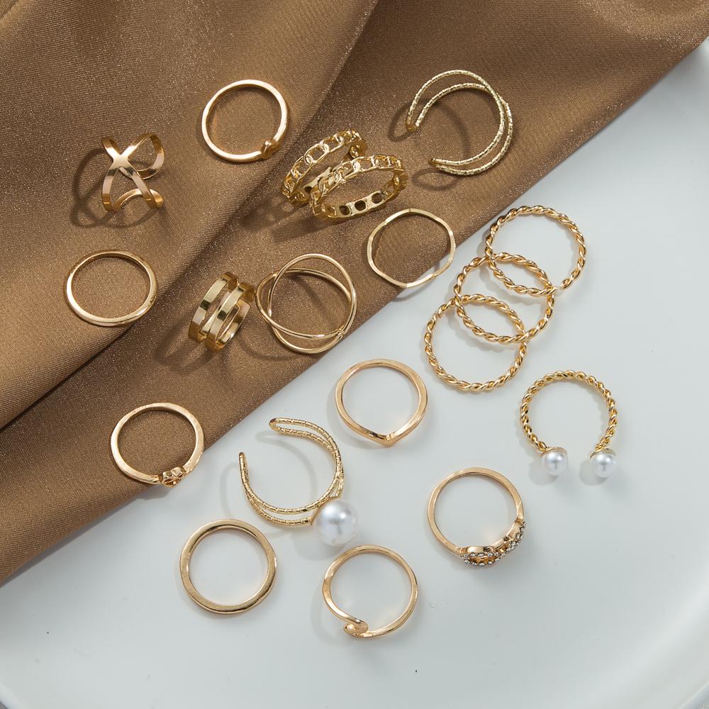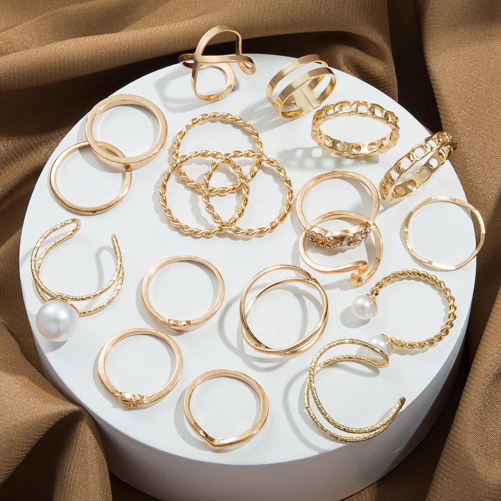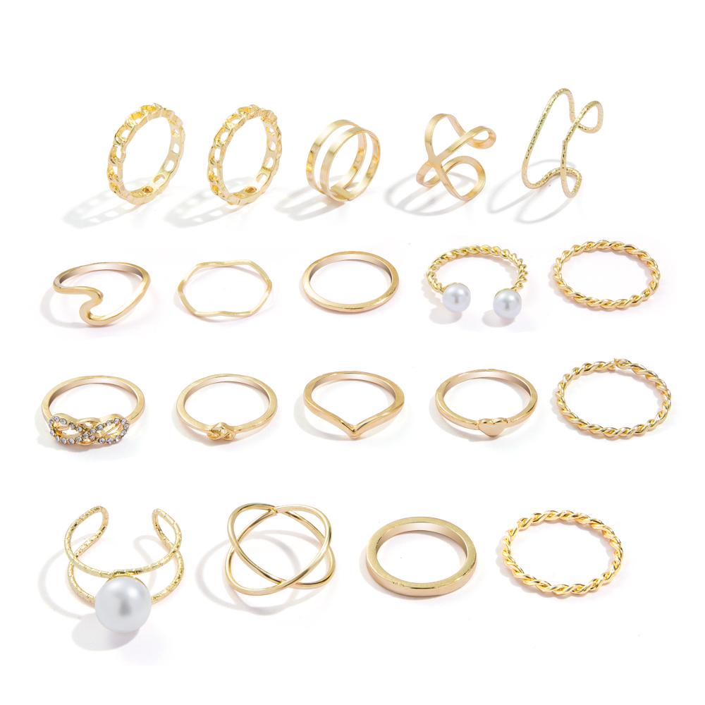 Темперамент, нерегулярное кольцо, комплект из 19 предметов, золотой модный комплект колец для пары, простое кольцо, популярные женские украшения
