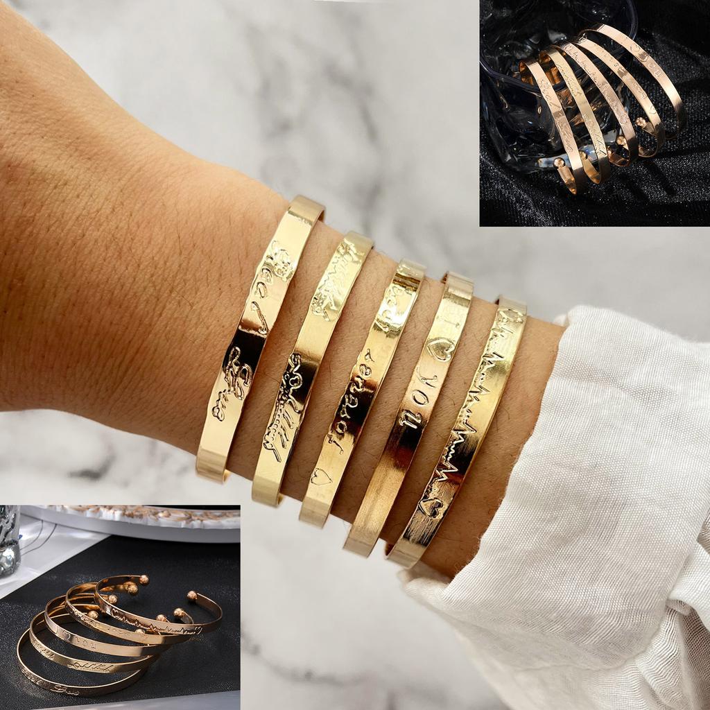Роскошный европейский резной браслет с широким отверстием и толстым летним пляжным браслетом в богемном стиле, набор из 5 предметов