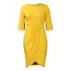 Женское модное однотонное плиссированное платье большого размера, элегантное цельное платье со средними рукавами и круглым воротником с брошью — купить товар онлайн с бесплатной доставкой до всему миру!