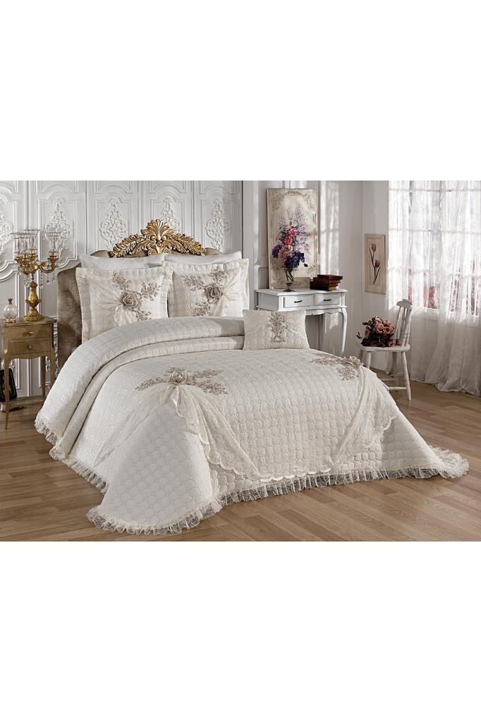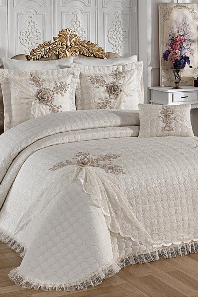 Goncagul Стеганое покрывало 4шт, Покрывало 260х260 с наволочкой, Хлопчатобумажная ткань, Двуспальный размер, Полноценная кровать, Кремовый