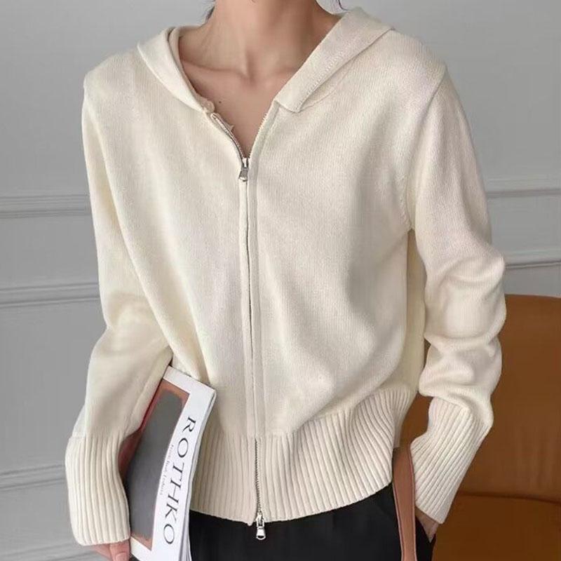 Весенний кардиган, свитер, пальто, женский дизайн, 2023, с длинным рукавом, с капюшоном, однотонный, с двойной молнией, вязаный кардиган, женский топ