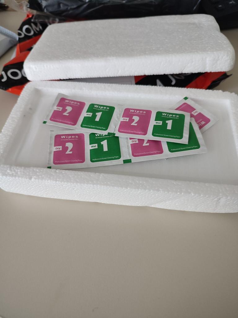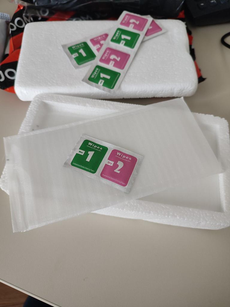 Стекло было тщательно упаковано. В коробочке из пенопласта лежали пять пакетиков со стеклами и по две салфетки на каждое стекло для чистки экрана. На мой телефон стекло подошло идеально. Качество покажет время. Спасибо большое продавцу и Joom.