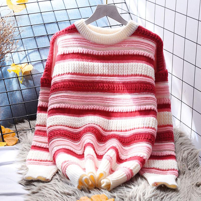 Полосатый пуловер, женский свитер 2023, повседневный осенне-зимний корейский свободный вязаный свитер с длинными рукавами и круглым вырезом, пуловер, женский топ — купить товар онлайн с бесплатной доставкой по всему миру!