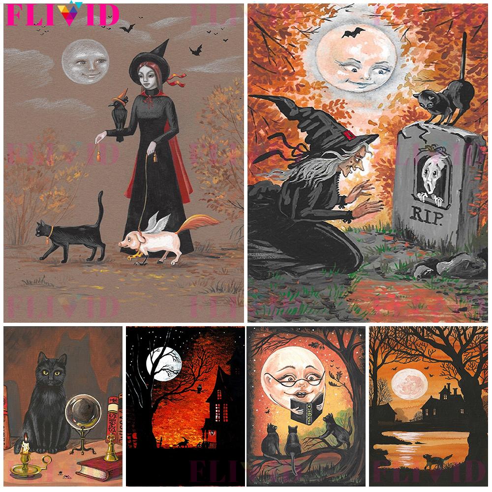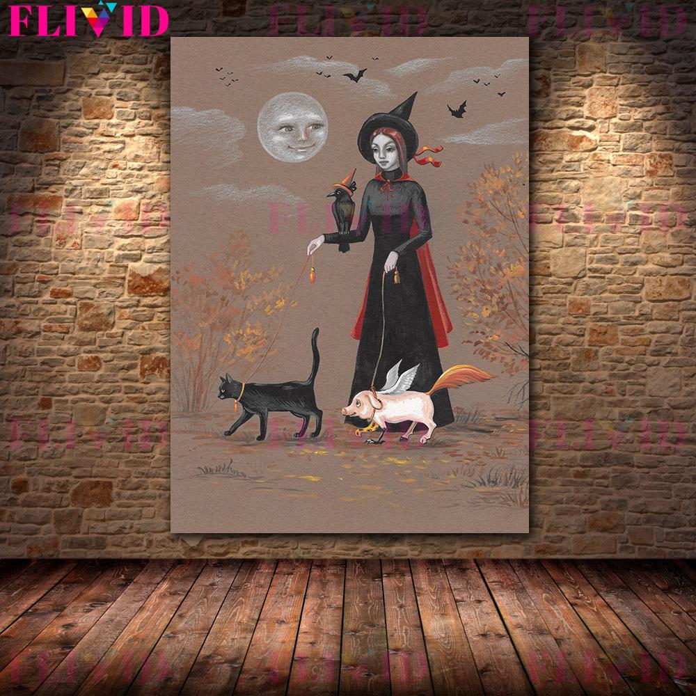Салем Стена Осенняя Вечеринка Ведьмы Художественное Украшение Картина Маслом Дом Ведьмы Призрак Ретро