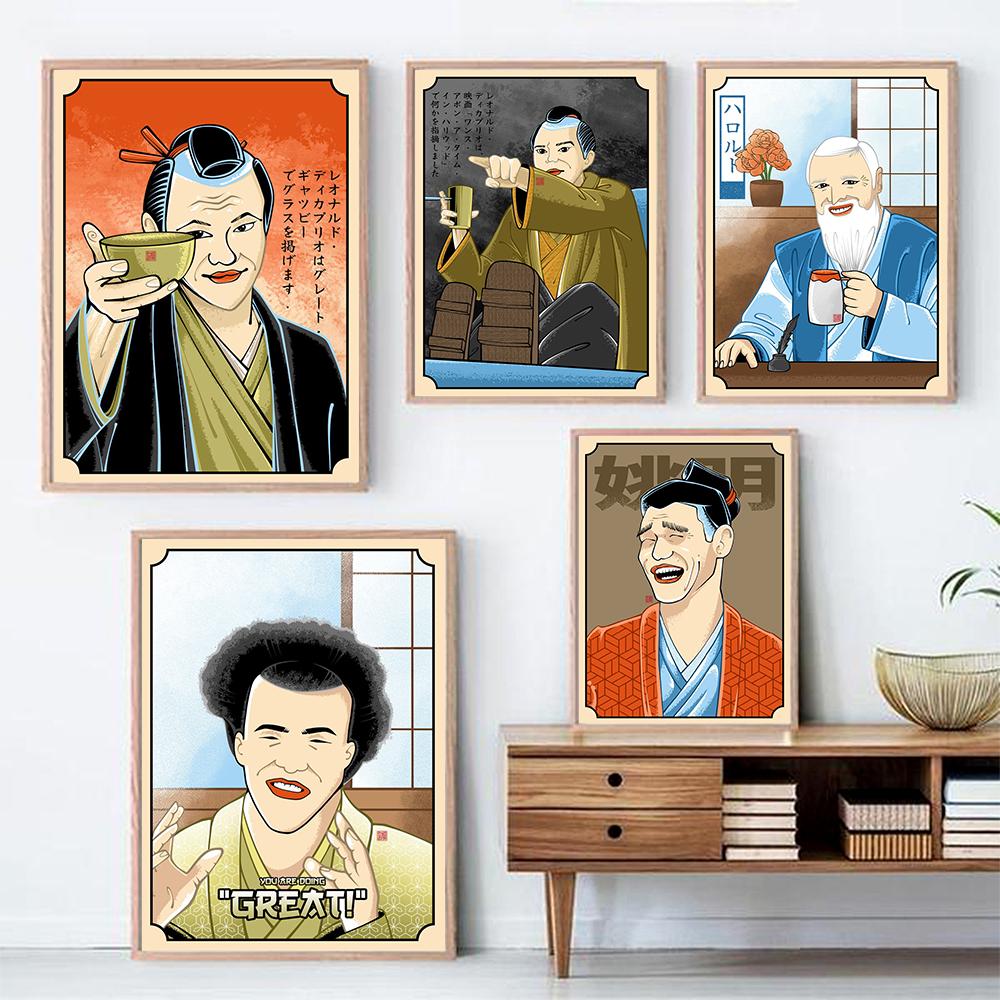 Забавный мужчина смеется, указывая на плакат маслом, пьет чай, японское украшение дома — купить товар онлайн с бесплатной доставкой до всему миру!