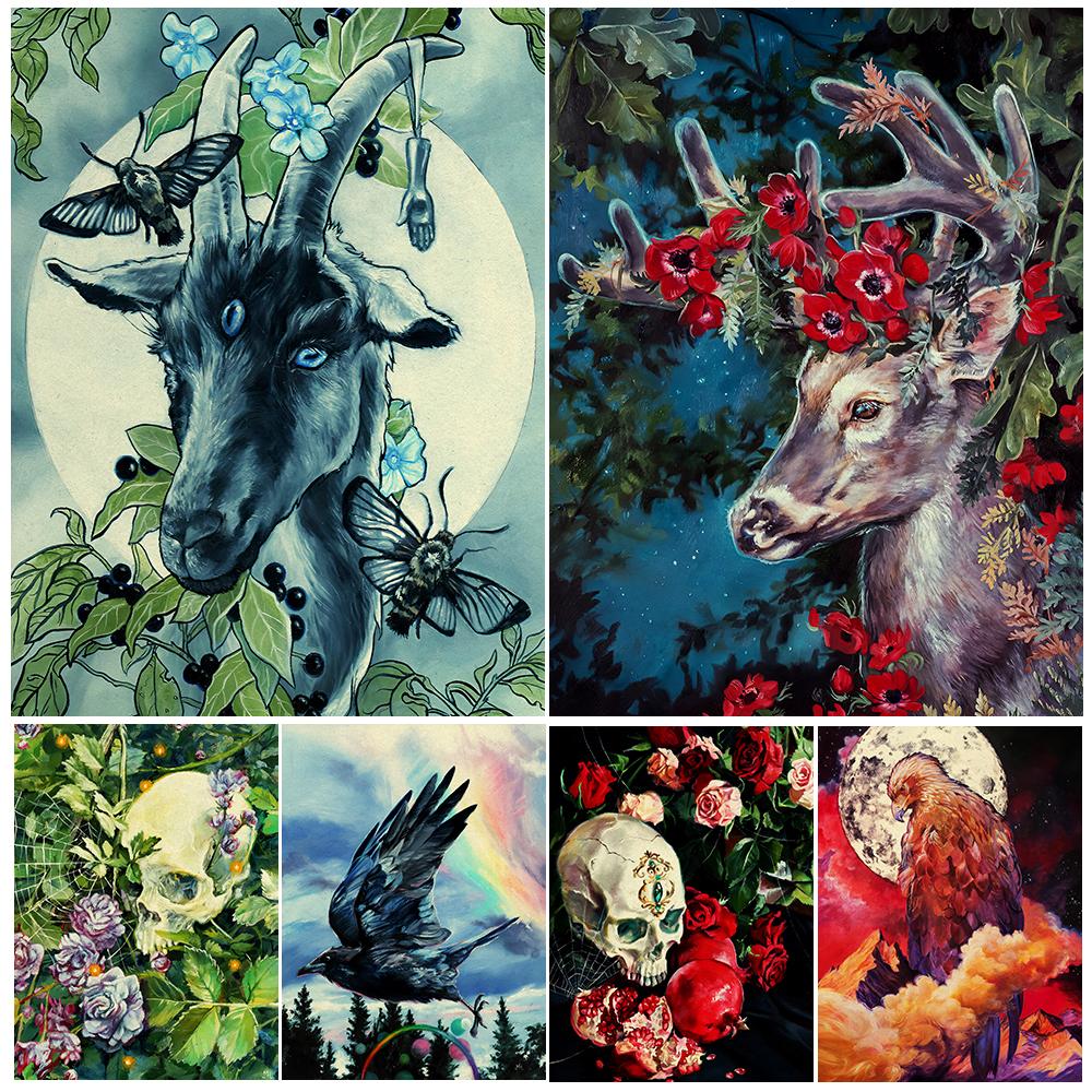 Мейлу, Черная овца, Орел, Черная ворона. Ретро настенная живопись маслом скелет и красный гранат художественный постер