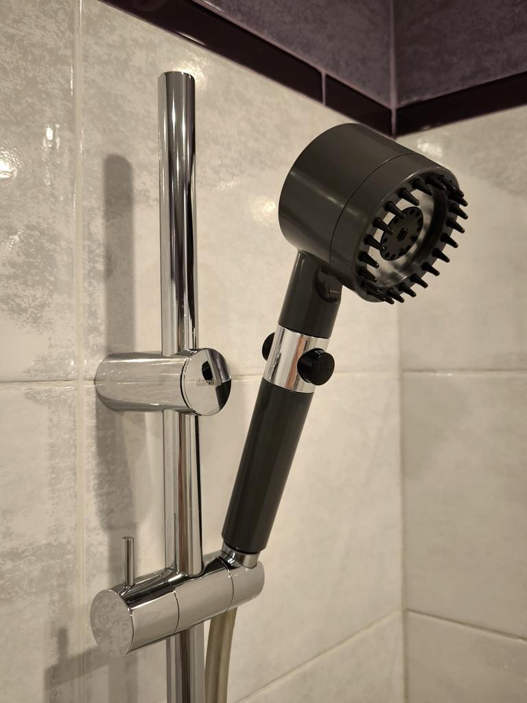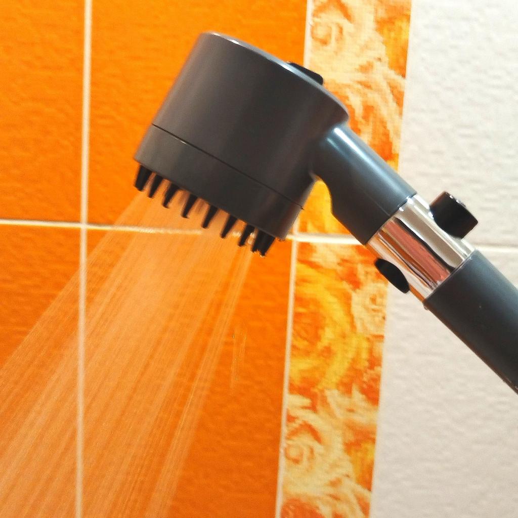 Лейка для душа с наноотверстиями По окружности имеет мягкие силиконовые шипчики. Это лейка-аэратор, и она обеспечивает экономию воды. Струи воды бьют далеко и если направить их вверх, они будут бить вверх. Даже при слабом напоре вода бьет вверх, а не стекает по лейке. Струйки очень деликатные и мягкие. Принимать душ одно удовольствие. Если сделать напор сильнее - становятся колючими и делают массаж. Интенсивность вы можете регулировать кнопкой стоп. Но из практики лучше самим смесителем, потому что в леечке образуется сильное давление и она может быстро выйти из строя. Останавливать воду тоже лучше с помощью самого смесителя. Изготовлена из прочного пластика серого цвета. Никакого постороннего запаха. Имеет 3 режима подачи воды. Режимы переключаются с помощью удобной трещетки, с обратной стороны головки. Отверстия очень маленькие. От налета ее легко очистить с помощью средства от налета. Достаточно большая. Я бы сказала, мужской вариант. Но и в женской руке лежит хорошо. Длина 26 см Головка 7,5*7,5*7 см Рекомендую 🤗