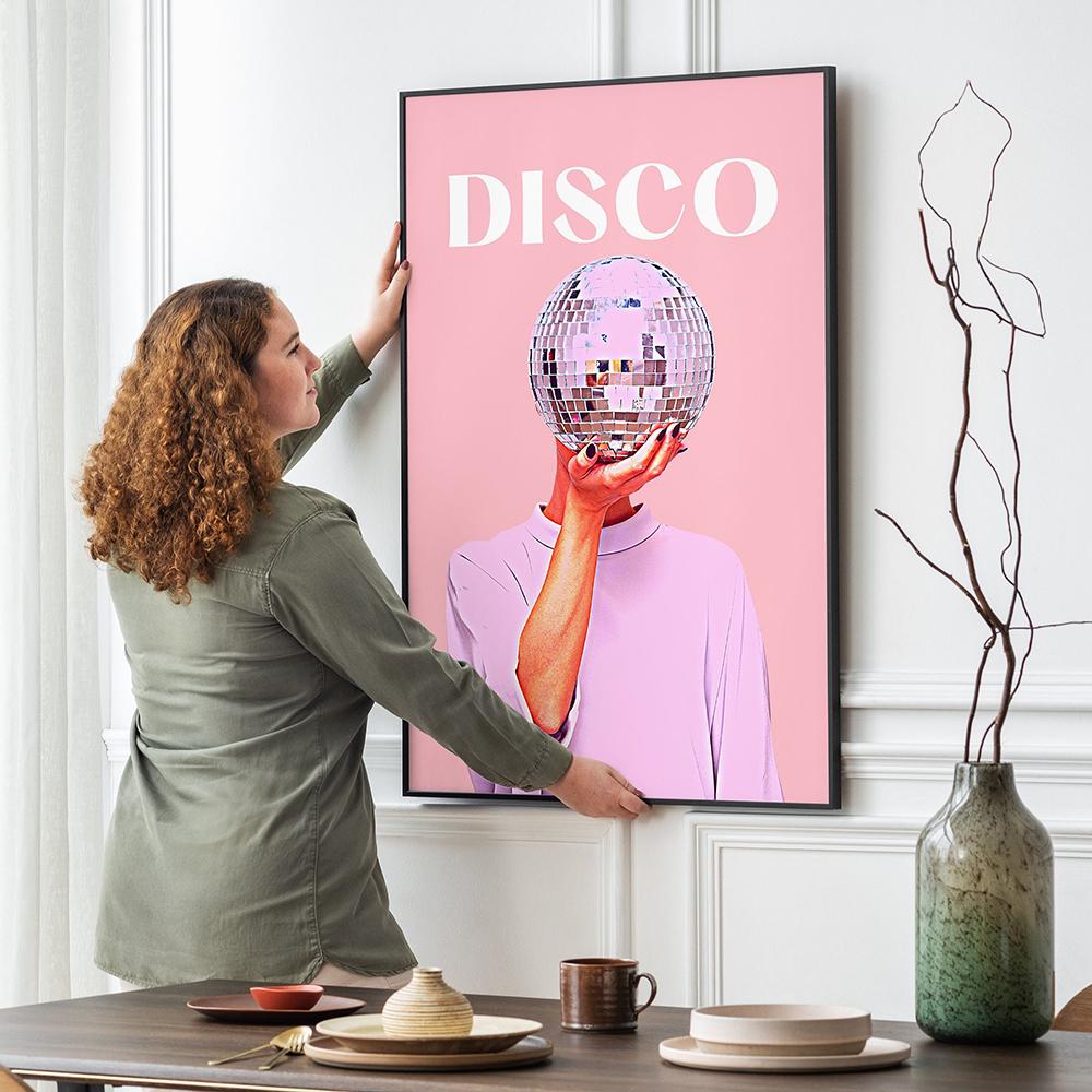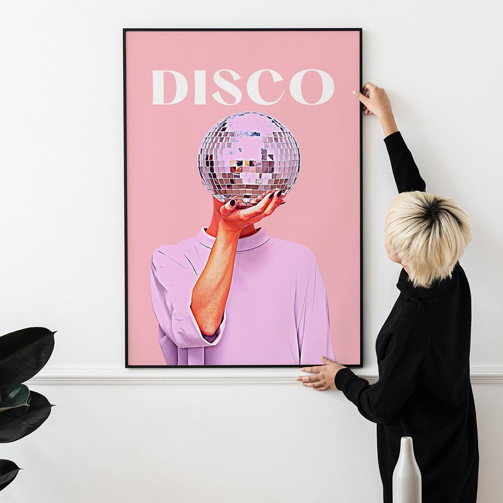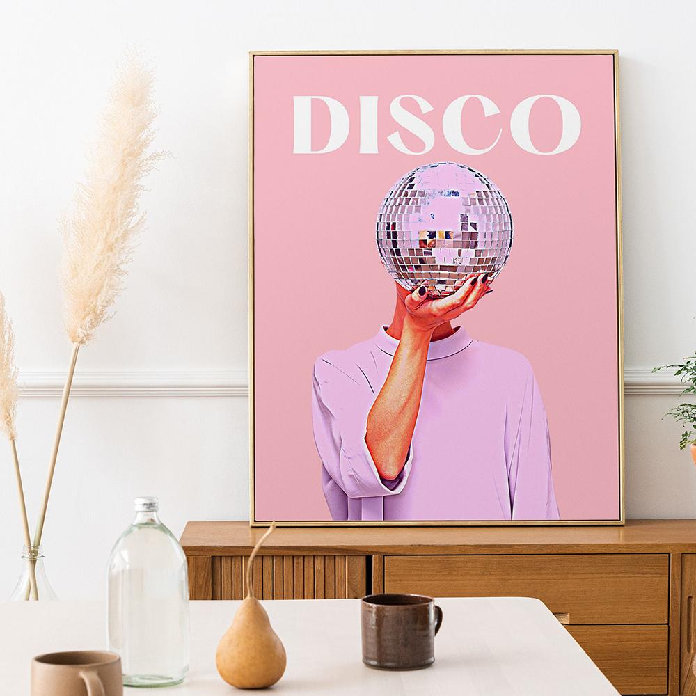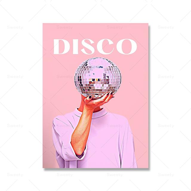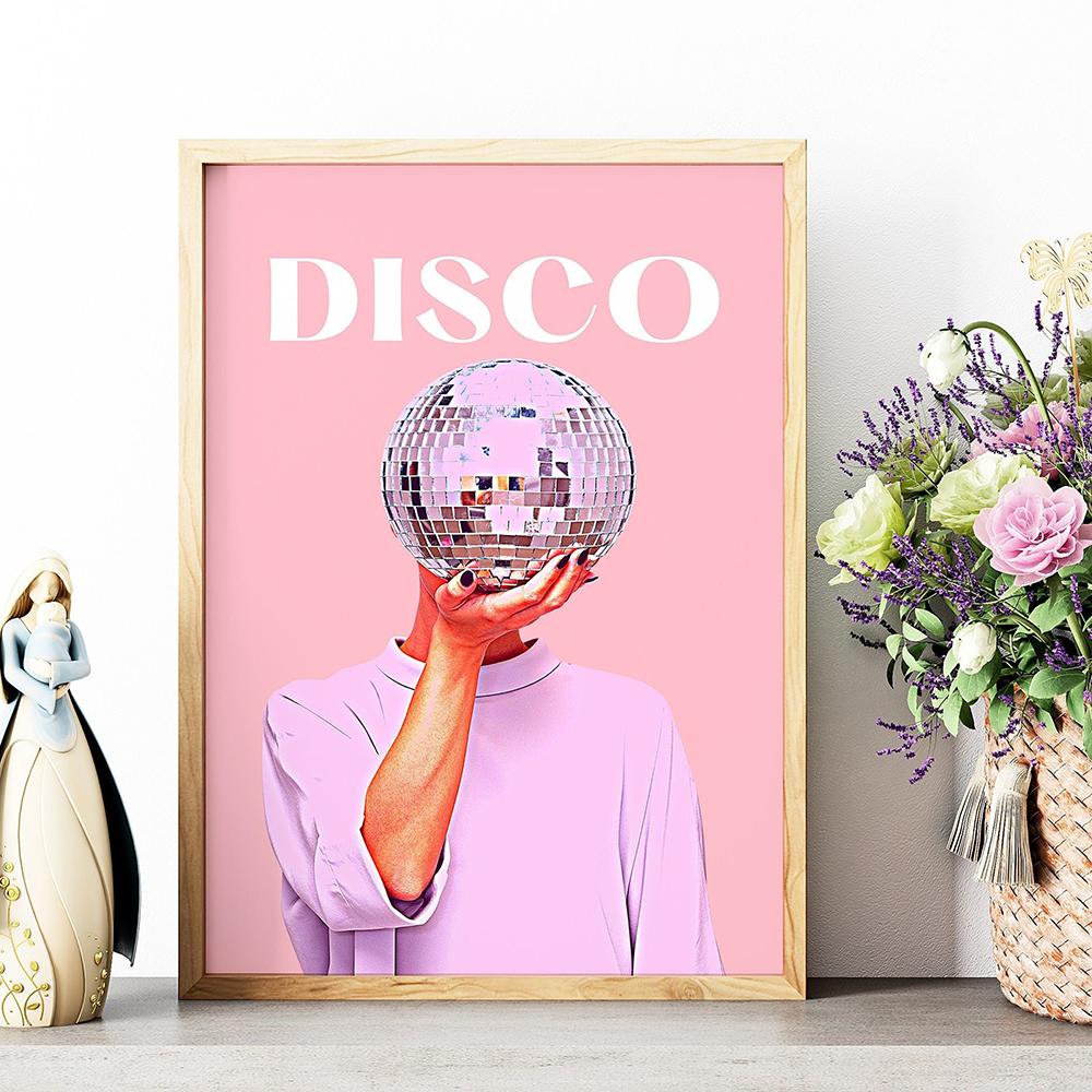 Розовый диско-принт, винтажное настенное украшение для девочек, мяч, художественная живопись, розовое украшение для общежития