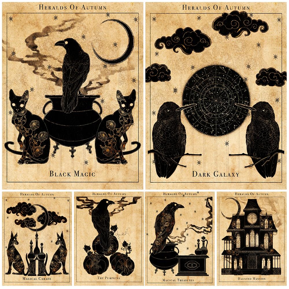 Дом-призрак и черная магия, ретро, настенная живопись, холст, картина, вороны и черная луна, волшебство, поклонение, художественный постер — купить товар онлайн с бесплатной доставкой по всему миру!