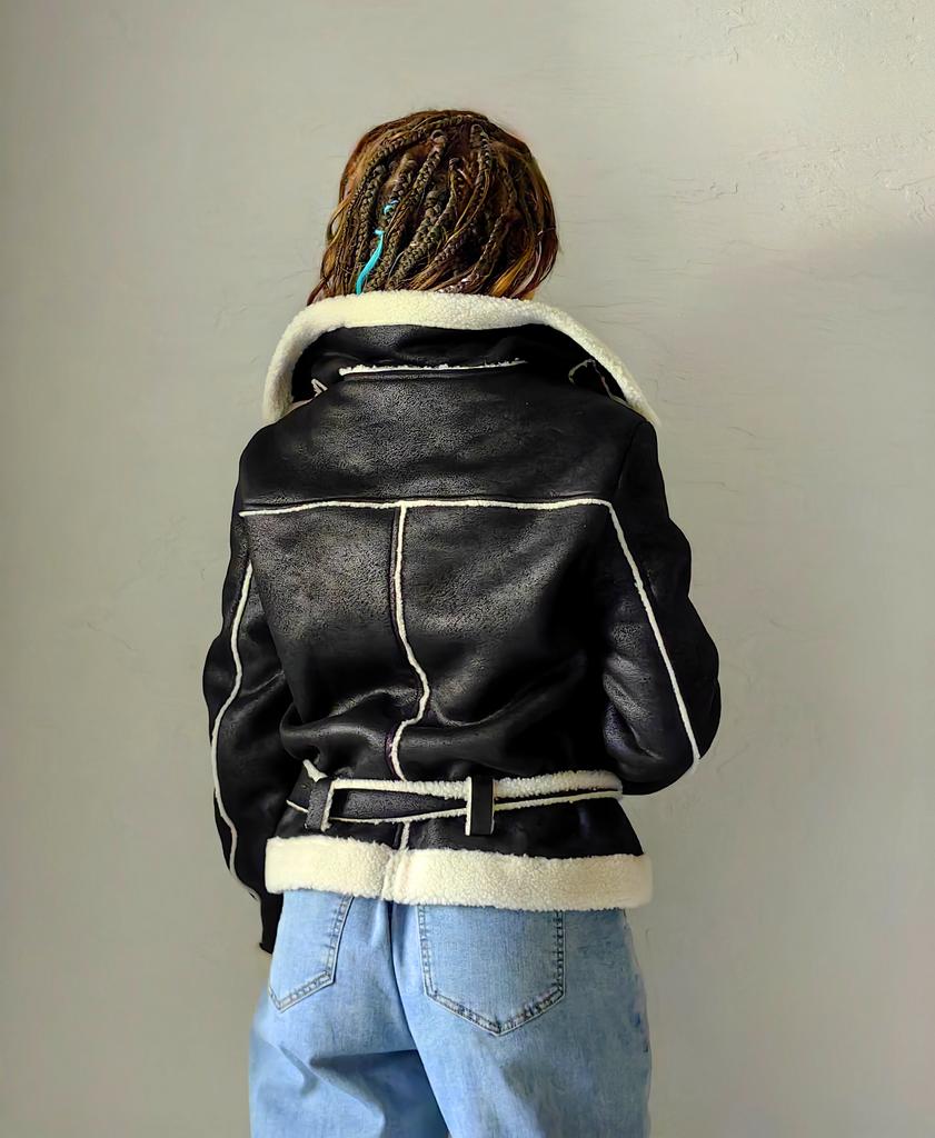 Куртки-бомберы для женщин, замшевая кожаная флисовая подкладка, теплое короткое пальто с лацканами и поясом на молнии, мотоциклетная куртка из искусственной кожи, стильная верхняя одежда, весенне-осенняя одежда — купить товар онлайн с бесплатной доставкой до всему миру!