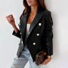 Женский осенне-зимний двубортный модный двубортный пиджак из искусственной кожи с длинными рукавами и лацканами
