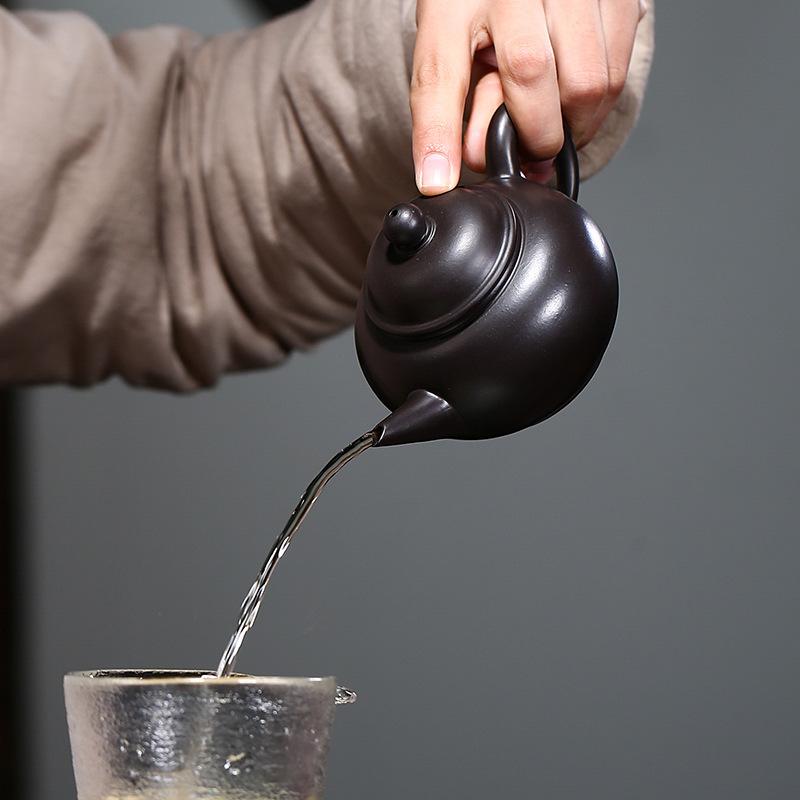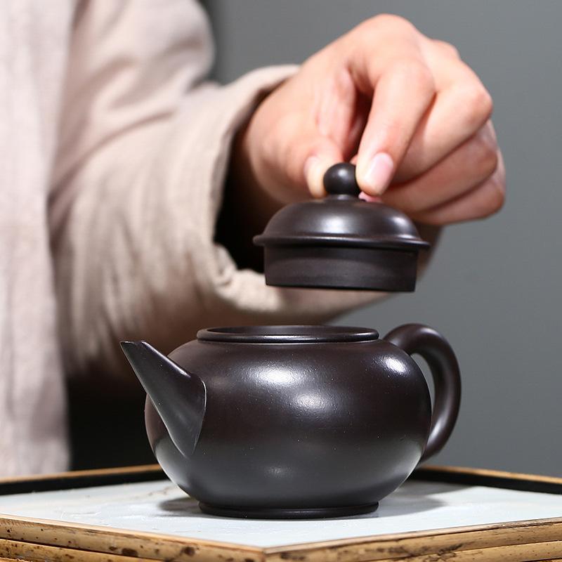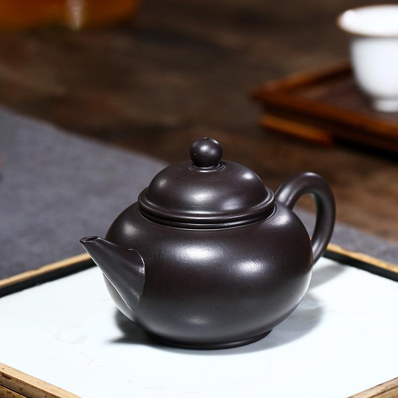Исинский чайник из фиолетовой глины, полностью ручная работа из необработанной руды, черная киноварь, световой элемент, горизонтальный горшок, чайный сервиз кунг-фу, емкость чайника 190 м