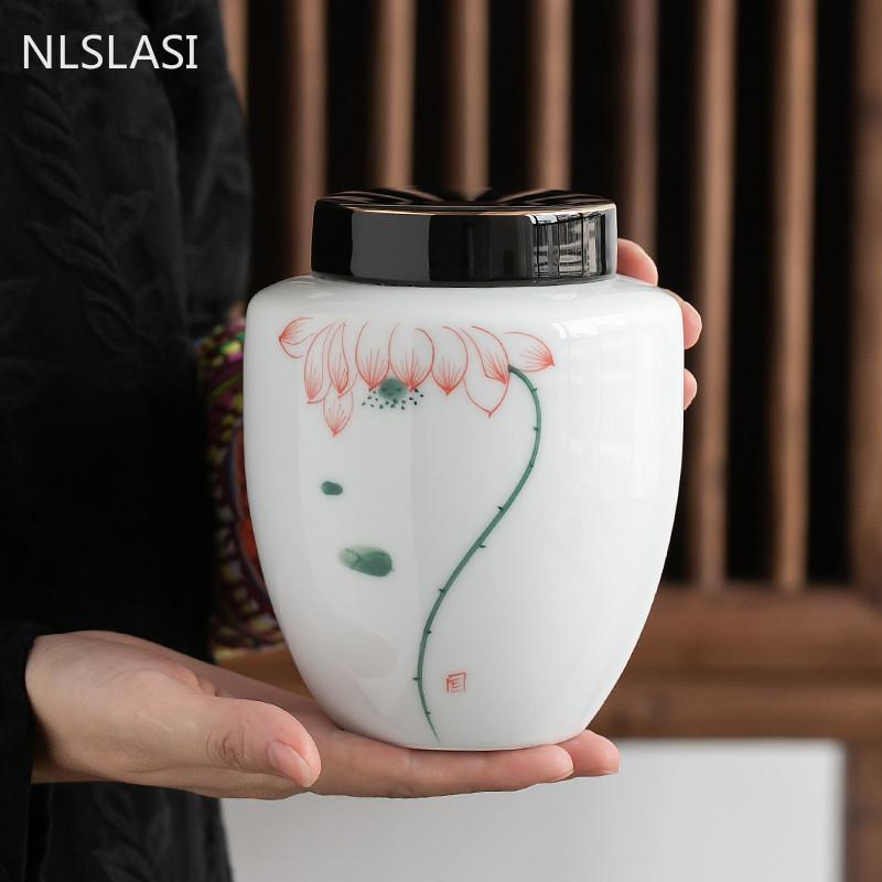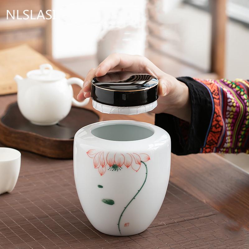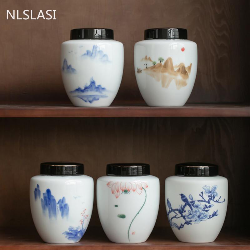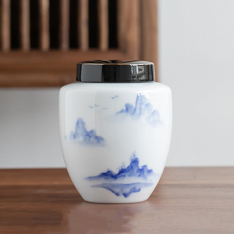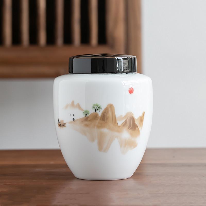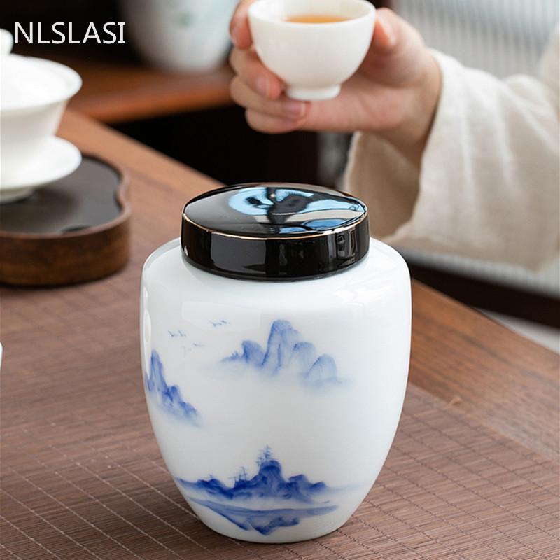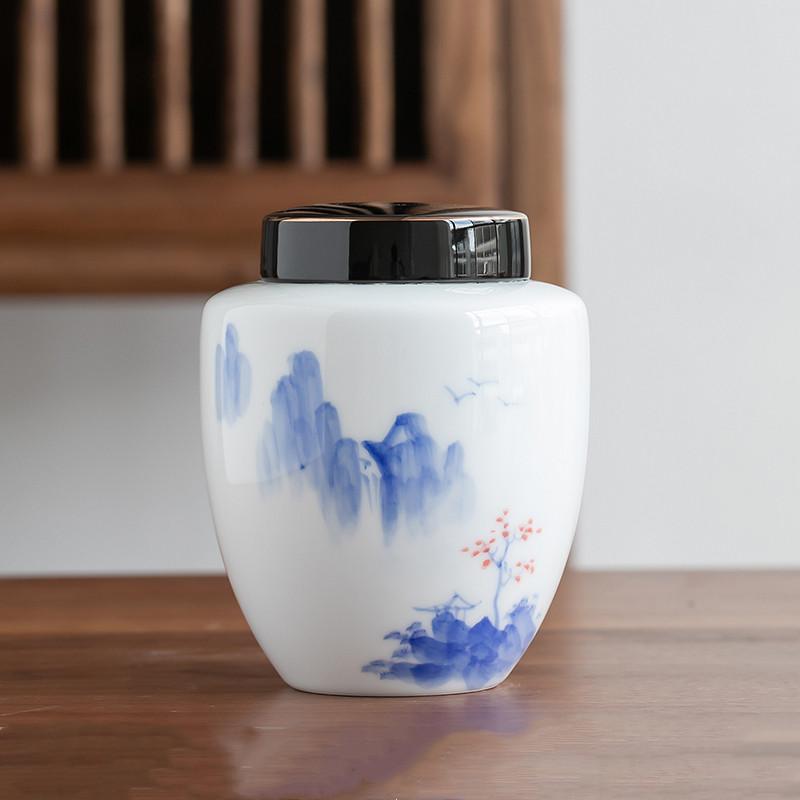 Керамическая банка для чая большой емкости, ручная роспись, пейзажный узор, герметичный резервуар для хранения, дорожная банка для чая, контейнеры для улуна Тегуаньинь