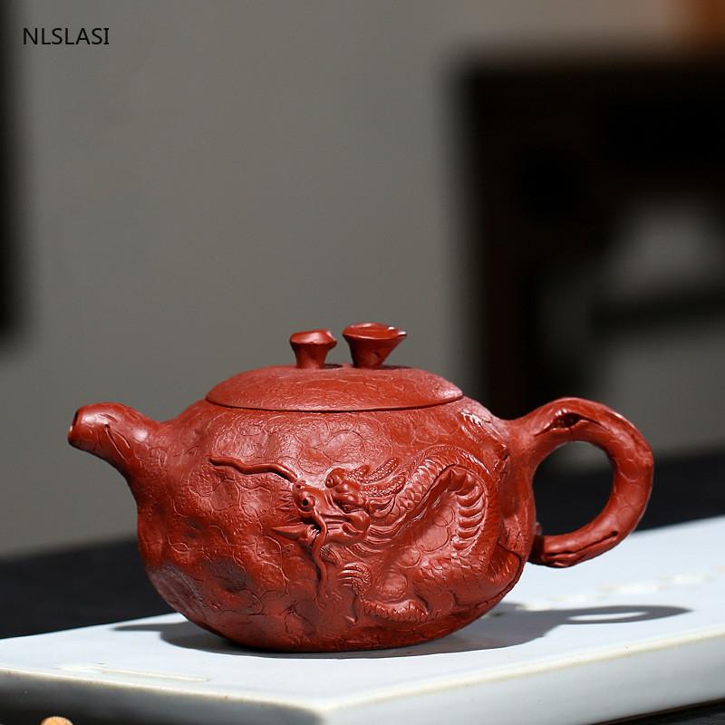 Чайник из исинской глины с узором «Дракон», фиолетовые заварные чайники, красивый чайник из необработанной руды Dahongpao, аутентичный чайный сервиз ручной работы 240 мл