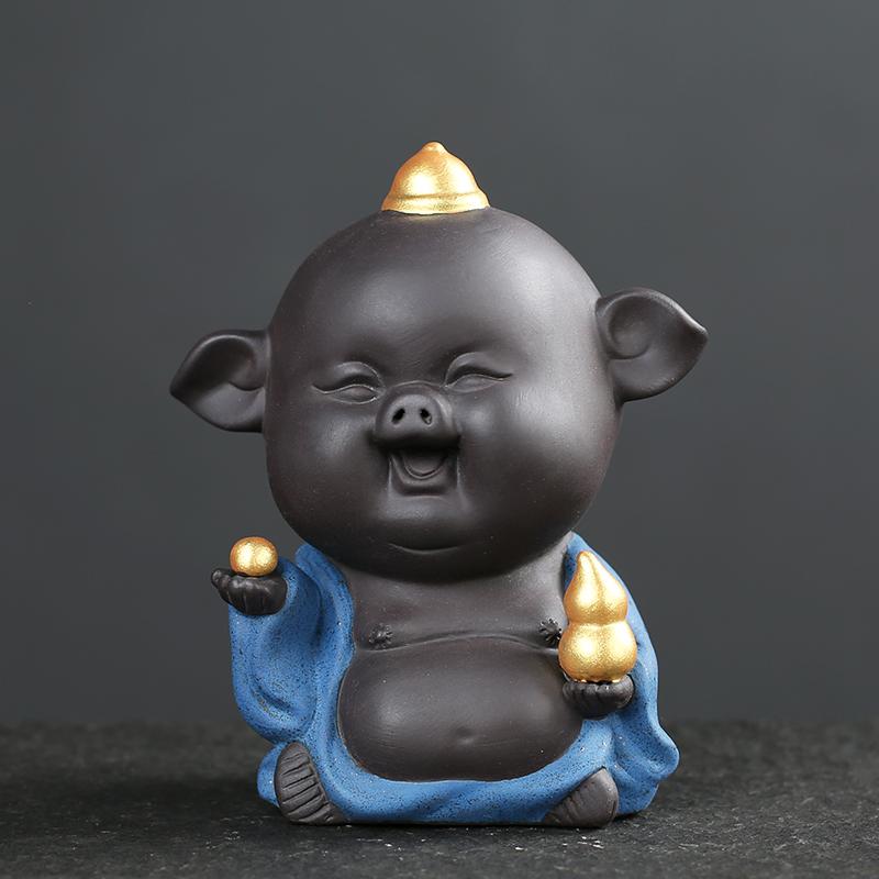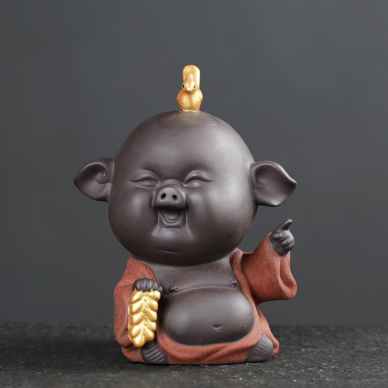 1 шт., ручная работа, фиолетовая глина, чай, украшения для домашних животных, статуя счастливого поросенка, чайная фигурка животного, бутик, украшение для чая, аксессуары, ремесла