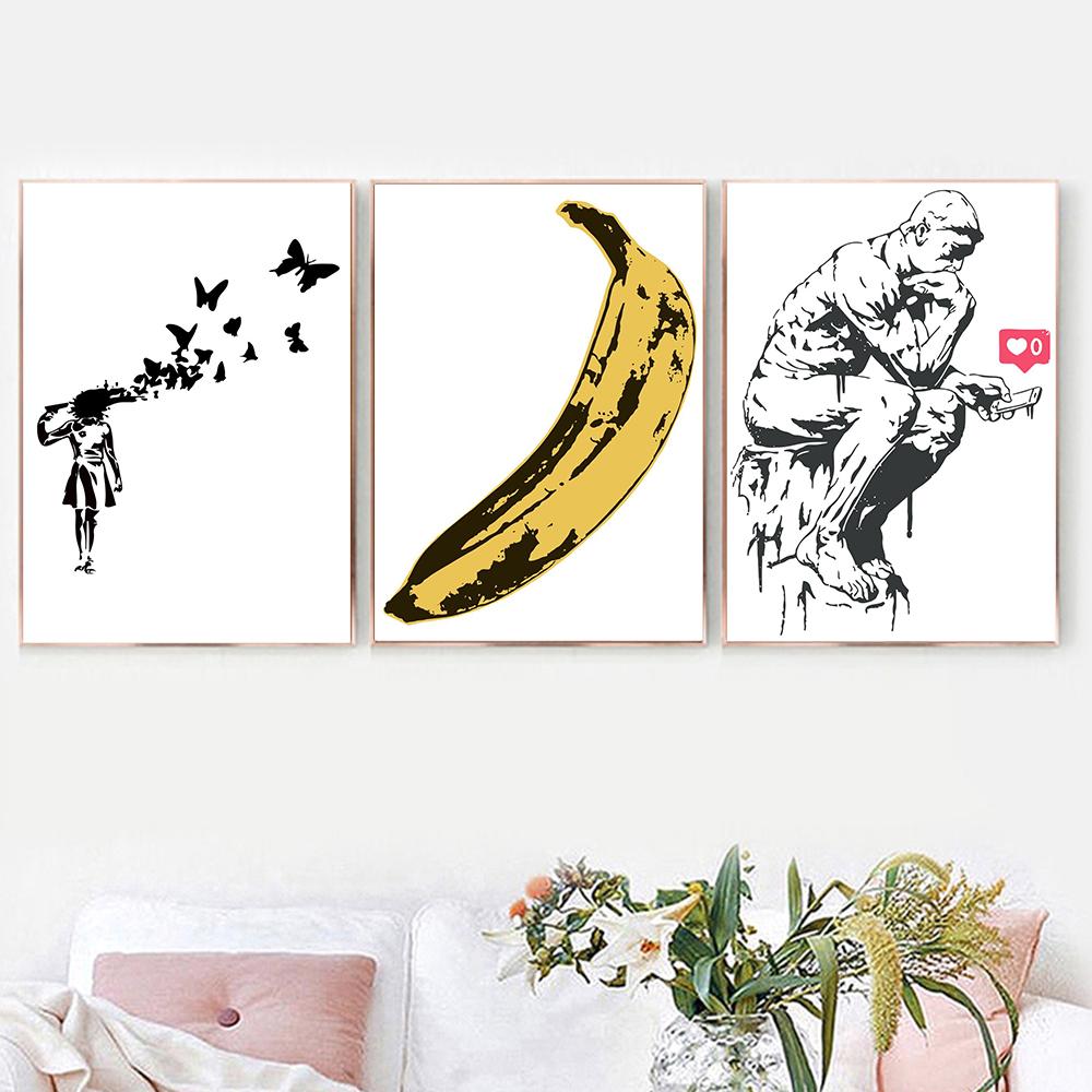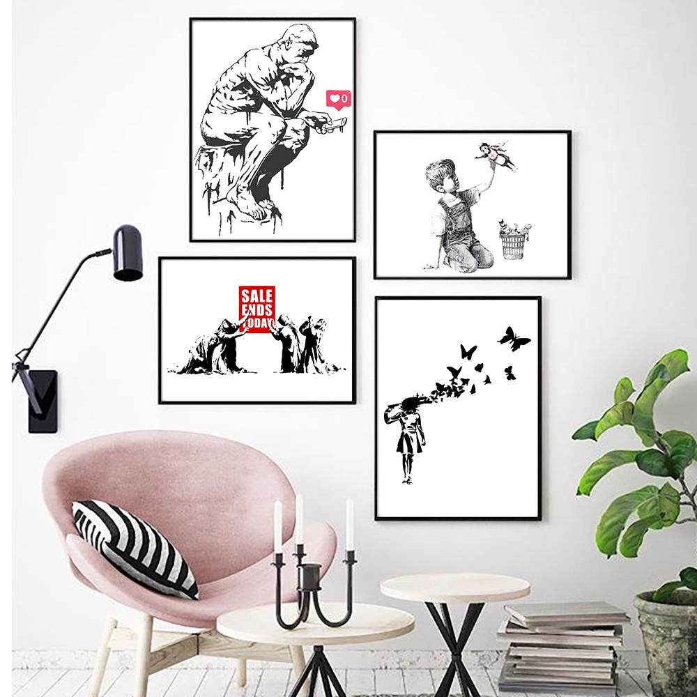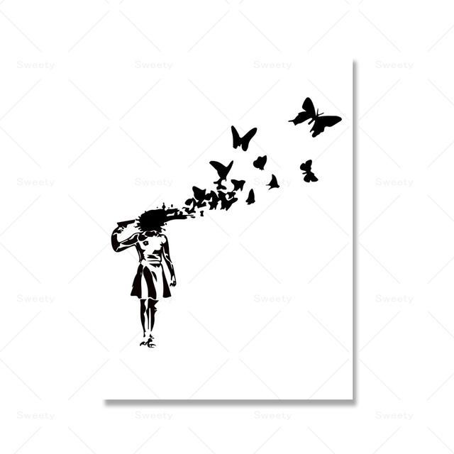 Уличное граффити, искусство Бэнкси, бабочка, девушка, сердце, постер, картина маслом, современный мыслитель, гостиная