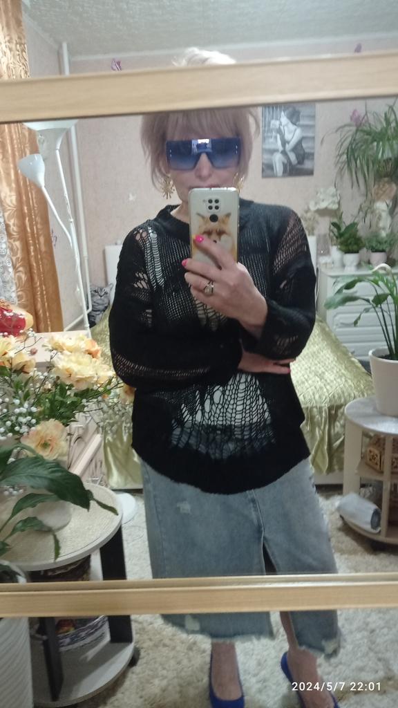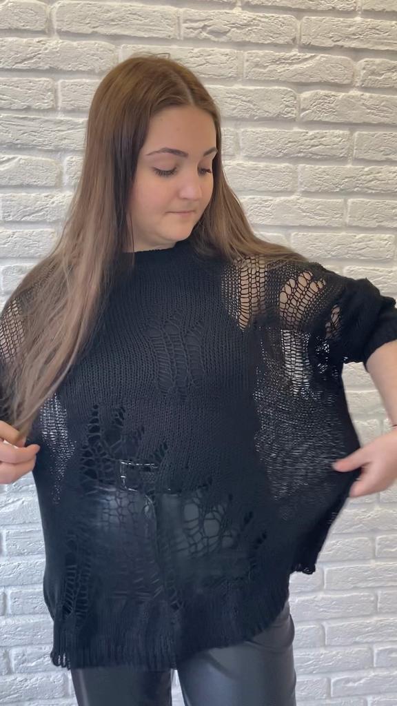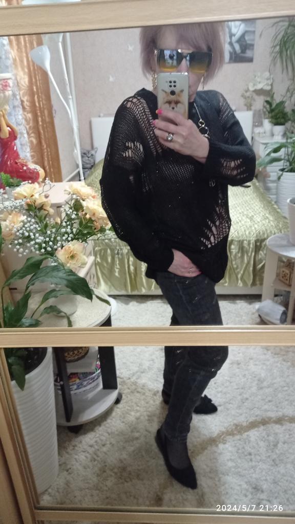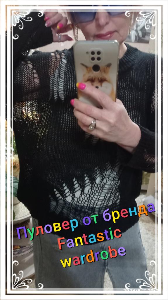 ☑️Пуловер из магазина Fantastic wardrobe! ☑️Очень многие девочки купили эту кофточку, очень много положительных отзывов! Вот и мне сильно захотелось иметь её 😉! Из двух цветов выбрала чёрный! ☑️Начну с положительных эмоций😄❗Как только я её достала из пакета и надела на себя, влюбилась сразу❤! Мягкая, приятная к телу, стильная вещь! Нить акриловая, тяжёленькая, поэтому хорошо обвисает по фигуре! Эти дырочки придают особый необычный вид изделию и смотрится как-то интересно, по -особому! ☑️Свитерок можно надеть сверху сарафанчика на тоненьких лямках, на любой топ!Можно на чёрный,а можно и на другие цвета! На контрасте даже лучше! Очень симпатично смотрится на блестящем топе👍Сквозь дырочки виднеется непринуждённый блеск и чёрный цвет сразу выглядит более интересно и празднично!!! ☑️На свои параметры 100/80/100 приобрела размер М, мне понравилось, как сел, свободы предостаточно! ☑️Ну а сейчас о самом главном минусе❗❗❗ Девочки! Очень сильно подвержен зацепкам!! Малейшая шершавая бижутерия серьги, кольца вытягивают нити и очень трудно заправить обратно! Думаю, что такая вещь прослужит недолго! Это, конечно, огорчило! Но всё равно, несмотря на это, вещь классная👍❗Буду носить с удовольствием ❤❤❤Кого не пугает выше написанное, бросайте в корзинку🛒😄😉🤩🙌🙌🙌❗