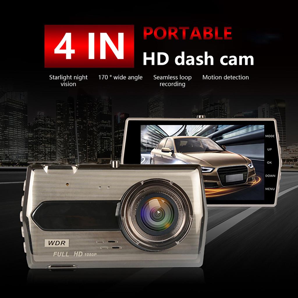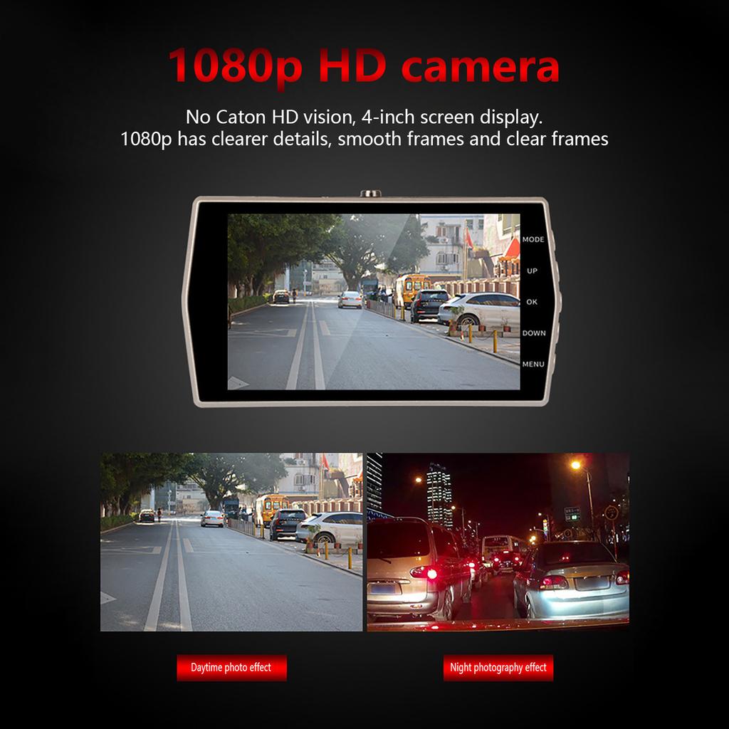 4-дюймовый Dash Cam Передняя и Задняя Двойная запись HD 1080p Ночное видение Dash Cam 170 ° Большой широкоугольный детектор движения Обратное изображение G Датчик парковки Мониторинг парковки