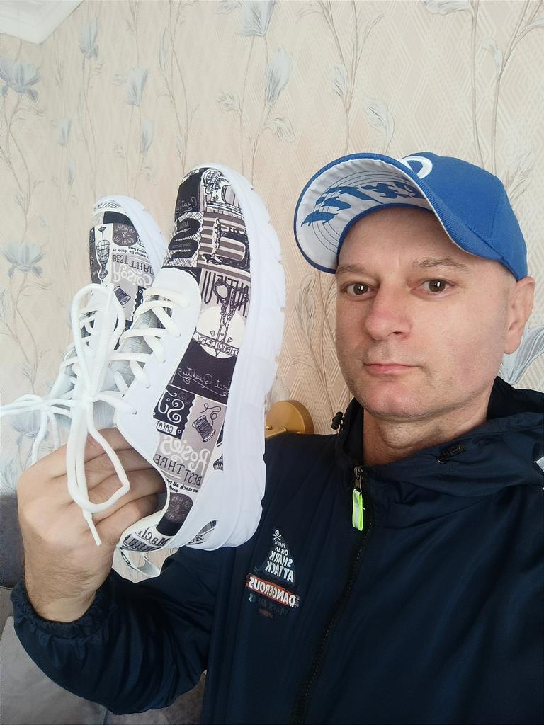 Нереально лёгкие и удобные кроссы для жарких летних дней, и не только! Их, действительно, практически не ощущаешь на ноге, ходишь по улице, как в домашних тапочках! Тканевый верх позволяет ноге свободно дышать, и в то же время хорошо отталкивает воду, а прочная подошва из ТПУ прекрасно сглаживает все неровности дороги👍 Благодаря модному принту обувь интересно смотрится, из украшений лишь белые ленты с надписью "Sport" на язычке и заднике. Пятка усилена накладкой из ПУ белого цвета, таким же материалом отделан верх, он же служит люверсами для шнурков. Стелька сменная, вспененный ПУ на тканевой основе. Подошва, как я уже писал выше, очень лёгкая, имеется небольшой протектор, гибкая и мягкая, как в кедах. У продавца можно выбрать цвет материала верха из двух вариантов, мой называется белый. Размер полностью соответствует таблице, ничего не нужно добавлять, просто берём свой обычный. У меня узкая стопа, в офлайне беру всегда 43, также поступил и здесь, кроссы подошли отлично 👍 Доставка составила две недели, курьер вручил посылку прямо в руки. Приходят к покупателю в обычном сером почтовом пакете, просто замотанными в пупырку, в моём случае достаточно небрежно, на одном кроссовке хорошо видно залом ткани прямо спереди. Надеюсь, он расправится сам, оценку за это не снимал. Также, один из шнурков был завязан на узел, пришлось поменять обое. Одеваю их достаточно часто, у нас сейчас очень переменчивая погода, с утра может быть летний зной, а после обеда - дождь и холод, такая универсальная обувь оказалась очень кстати🙂 Заказ оставил в целом, хорошие впечатления, с удовольствием могу рекомендовать их к приобретению! Спасибо большое вам за ❤️, мне очень приятно, заходите поболтать, всегда рад новым друзьям и никогда не забываю старых 😉