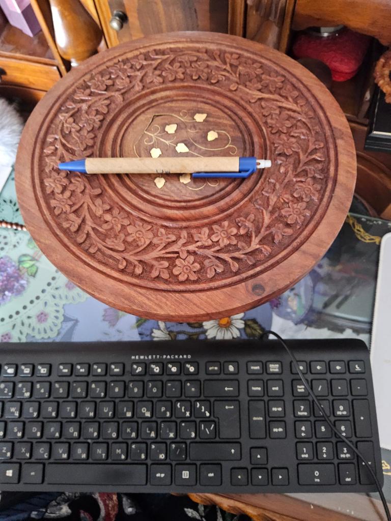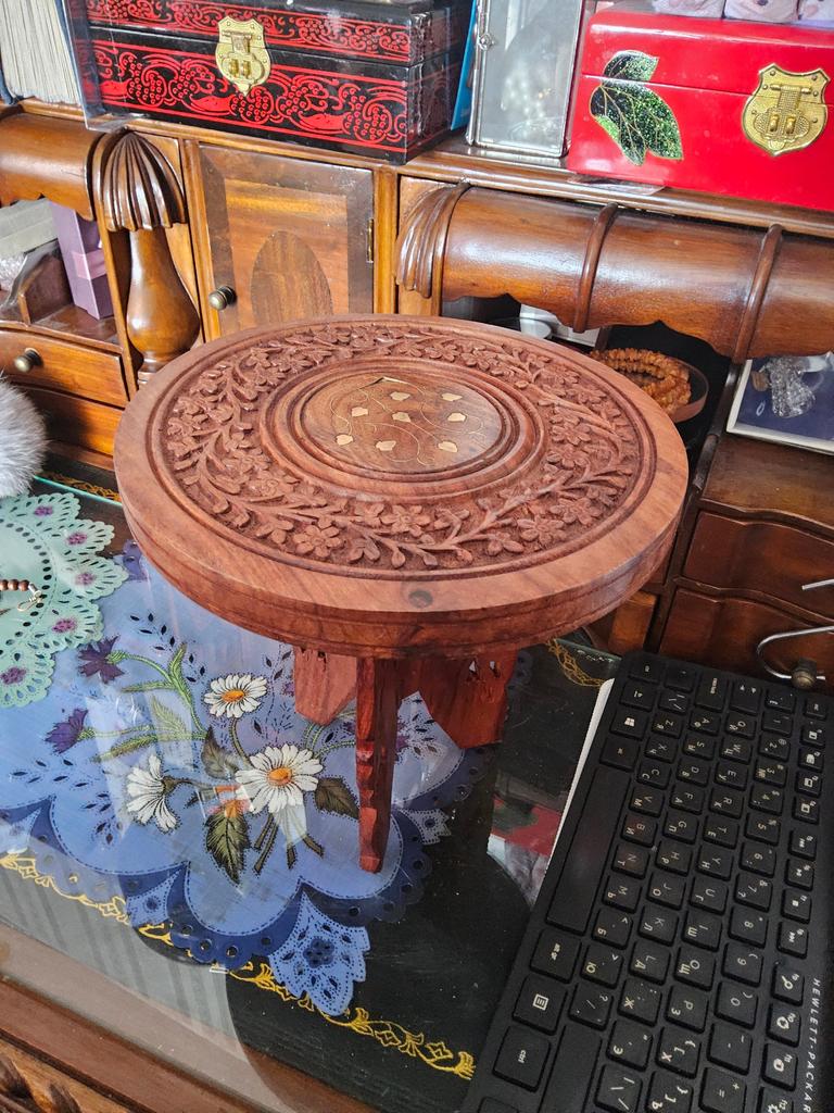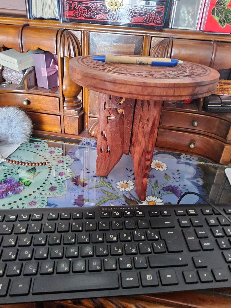 Отличный сувенирный столик для напольной вазы. Можно использовать как кукольный стол! Я бы купил такой же полноразмерный. В посылку было вложено письмо написанное от руки с благодарностью за покупку. Мне показалось это очень милым. Я давно не получал рукописных писем. Возможно это мне последнее рукописное письмо :).