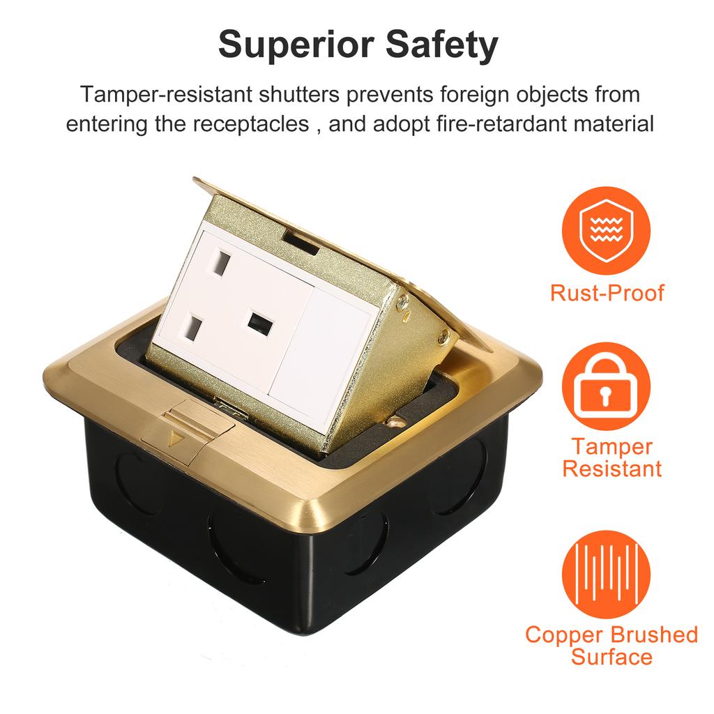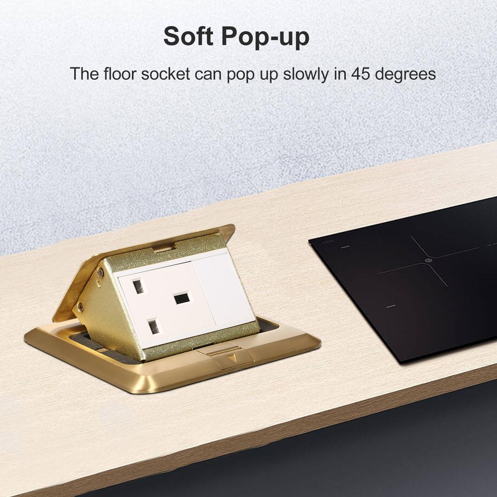 Выдвижная розетка заземления: Золотой цвет, красивый дизайн медной поверхности, равномерный и гладкий, плотно прилегает к монтажной поверхности