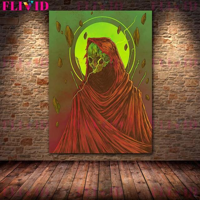 Лунный демон и мастер ужасов, винтажная настенная живопись маслом, скелет демона, готический темный художественный постер