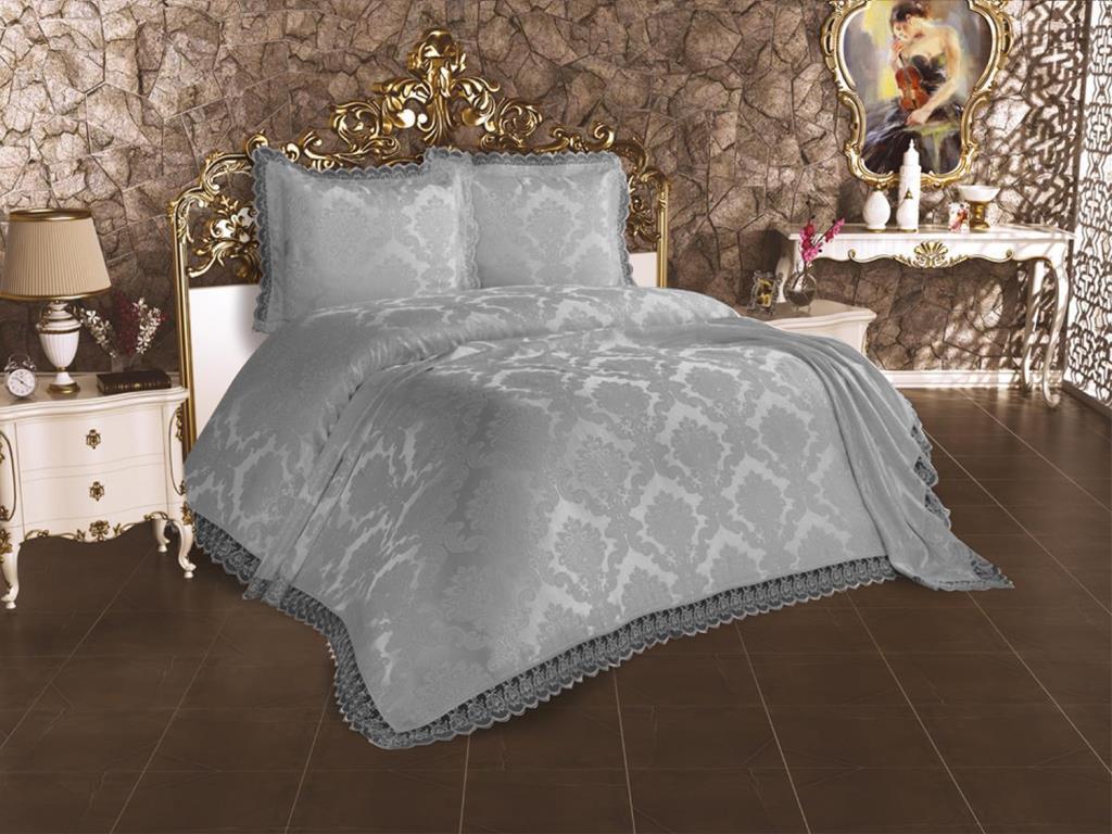 Комплект покрывала из синели Lalezar, покрывало 235x250 с наволочкой, жаккардовая ткань, полный размер, двойной размер, серый