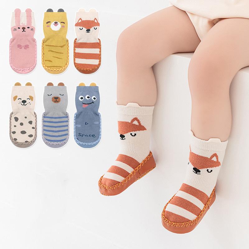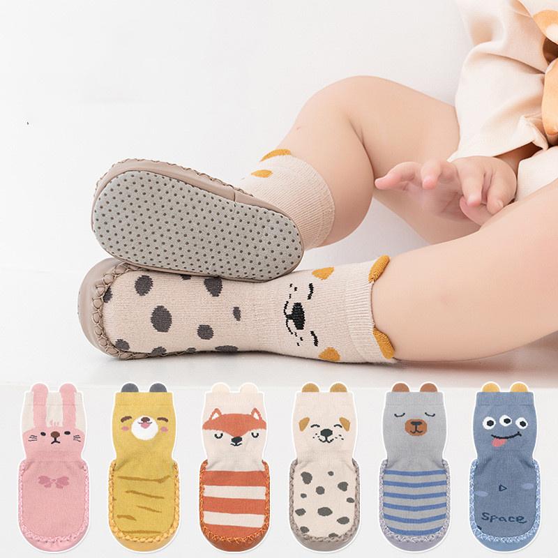 Новорожденные детские носки с резиновой подошвой и противоскользящим дизайном - Принты с животными и космосом для младенцев (0-18 месяцев)